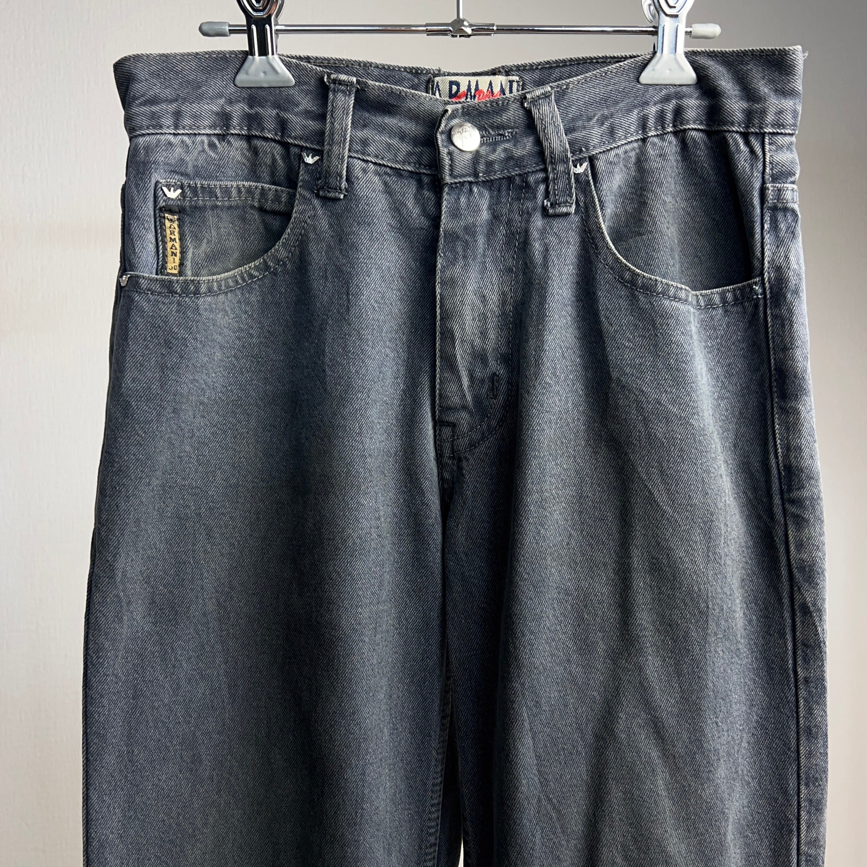 90's~ “ARMANI JEANS” Black Denim Pants アルマーニ ジーンズ ブラックデニムパンツ W29.5【0908A104】
