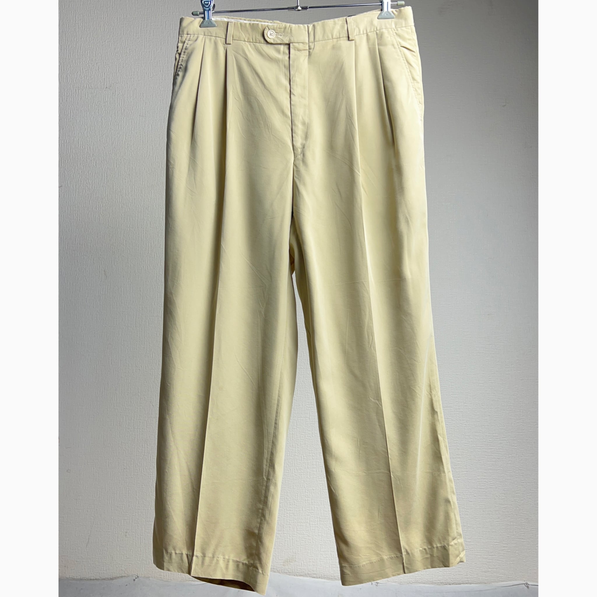 レーヨンやシルクなどのスラックスと同様にテロテロとした生地を使った2タックスラックス。