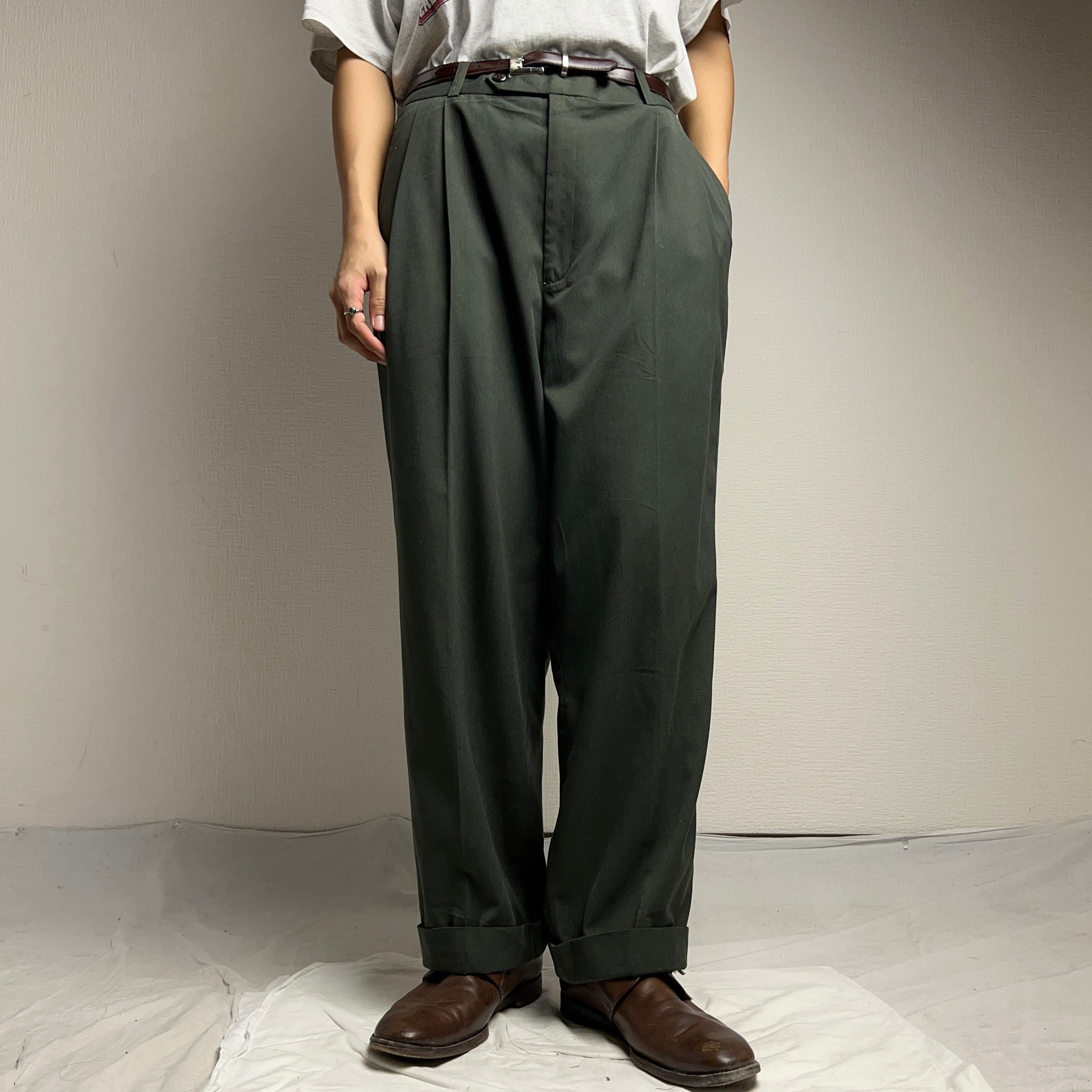 2Tuck Wide Slacks Moss Green モスグリーン 2タックワイドスラックス W35【0908A114】