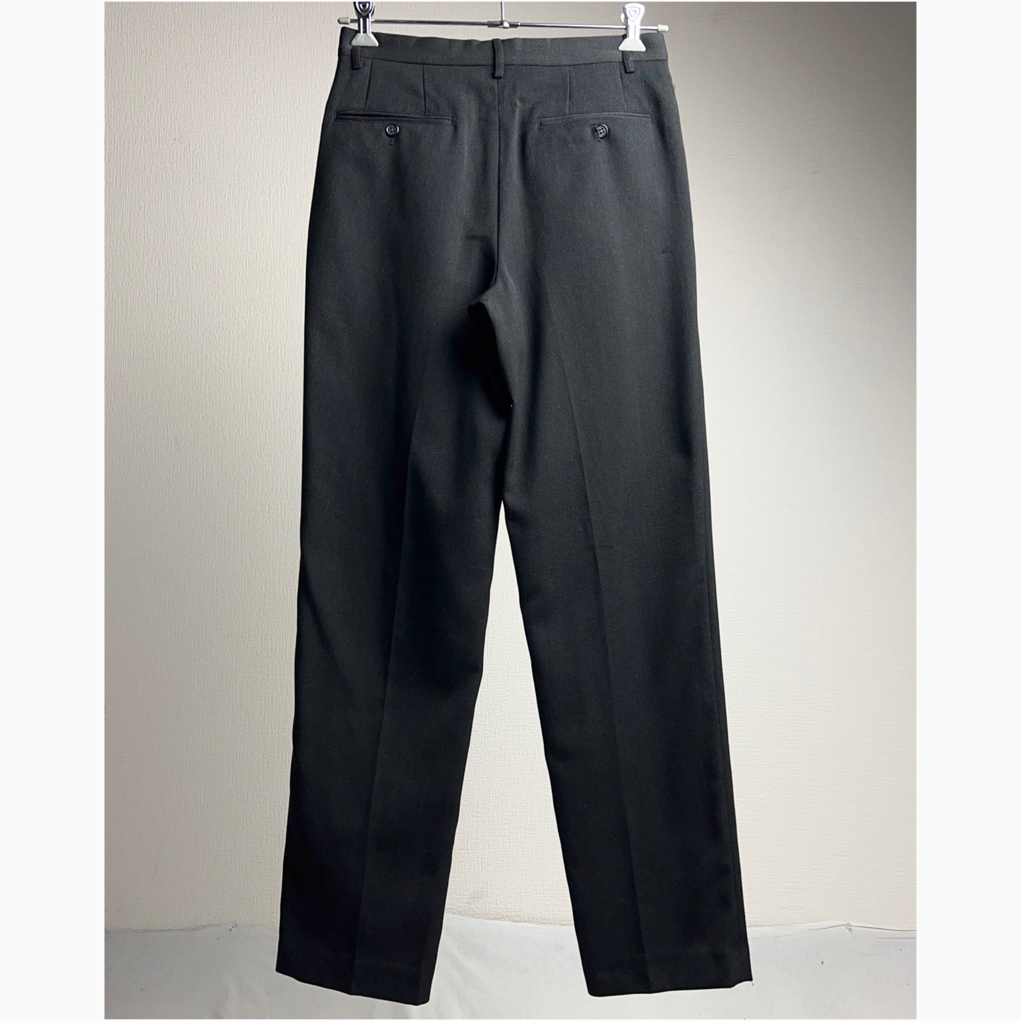ブラックの2タックウールスラックス。