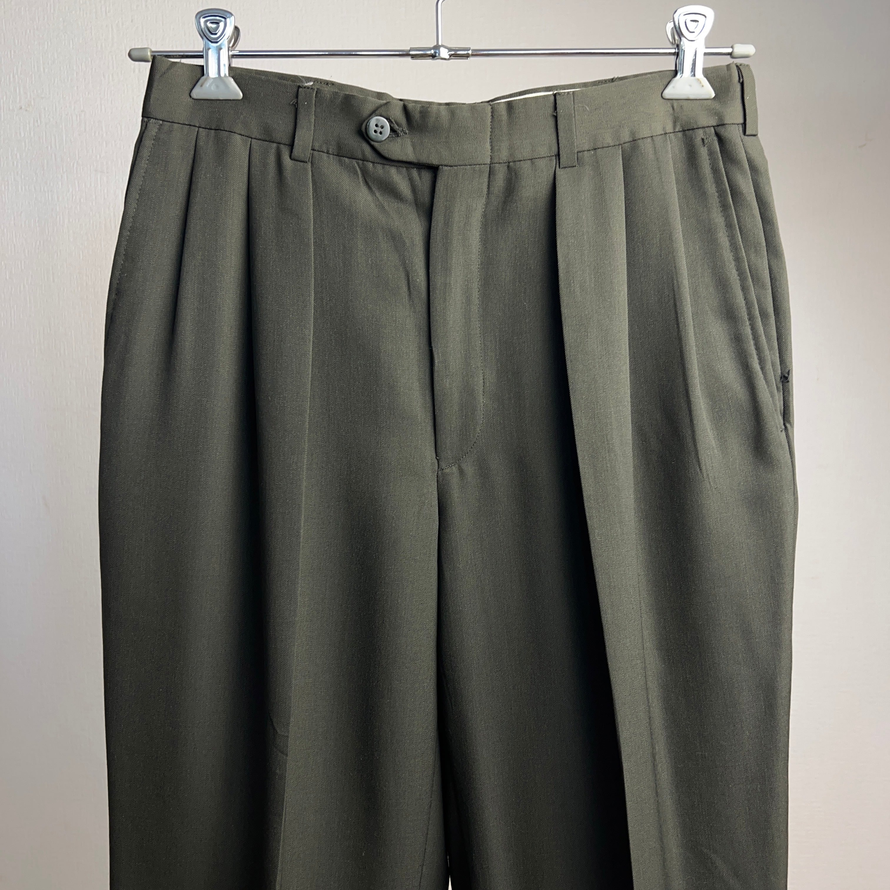90's~ 3Tuck Slacks IN-TUCK W30 3タック スラックス インタック モスグリーン【0929A01】