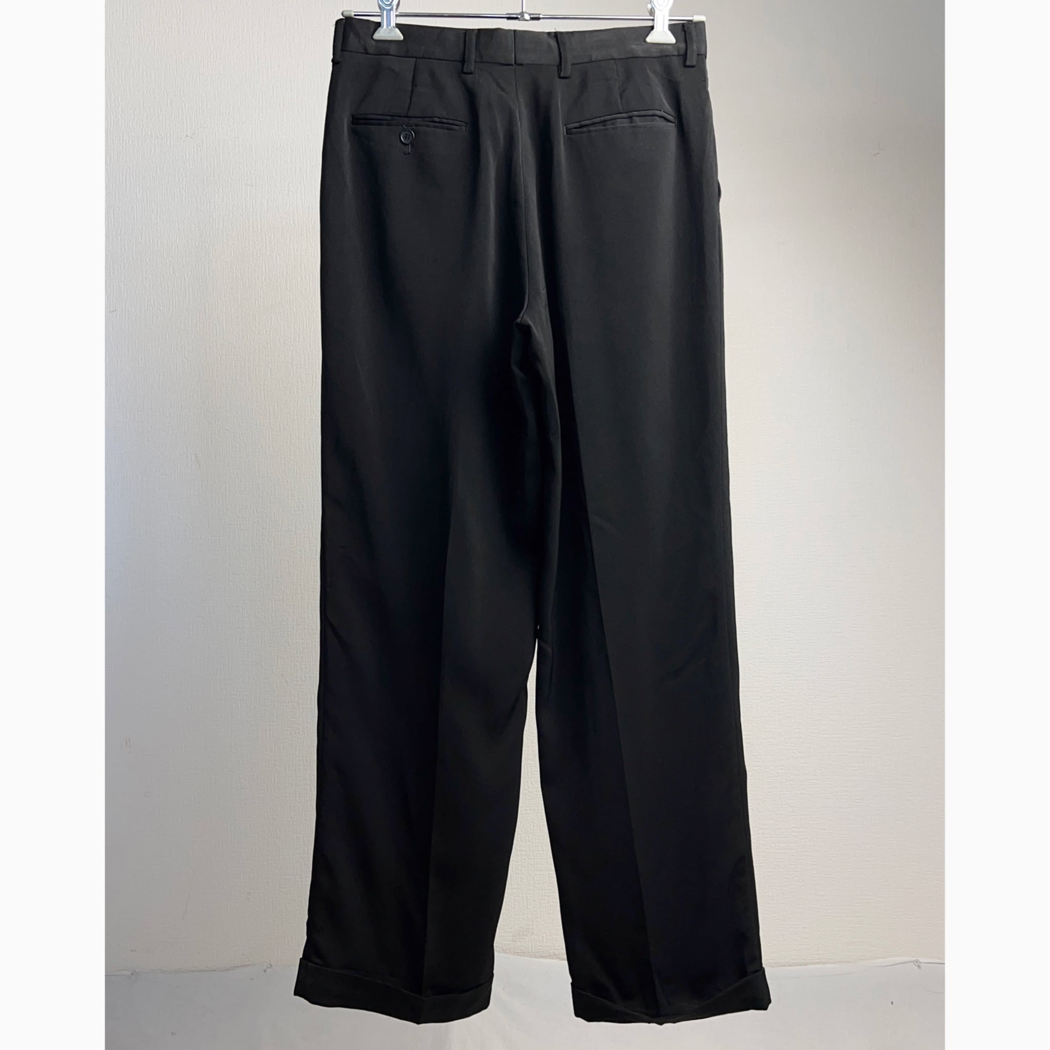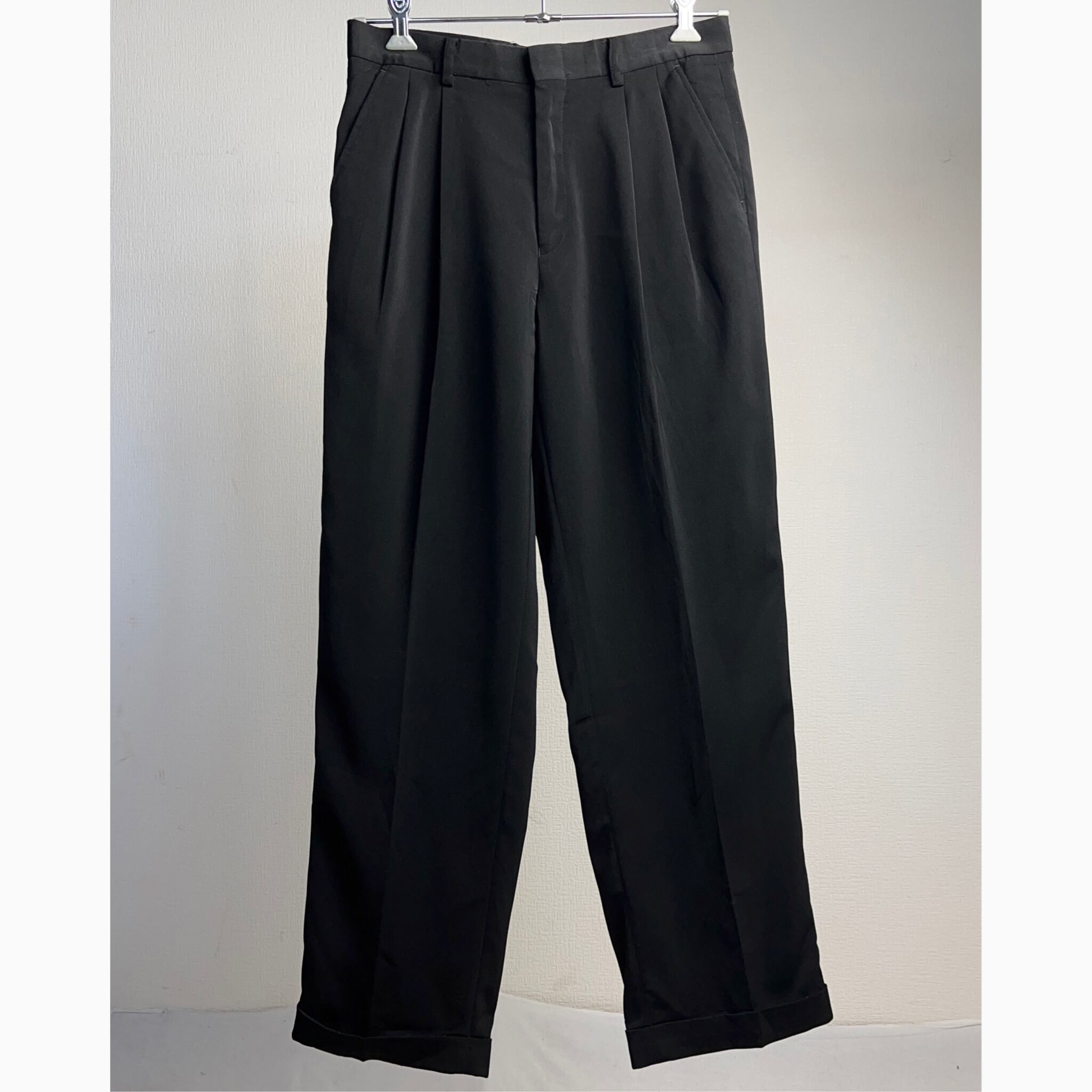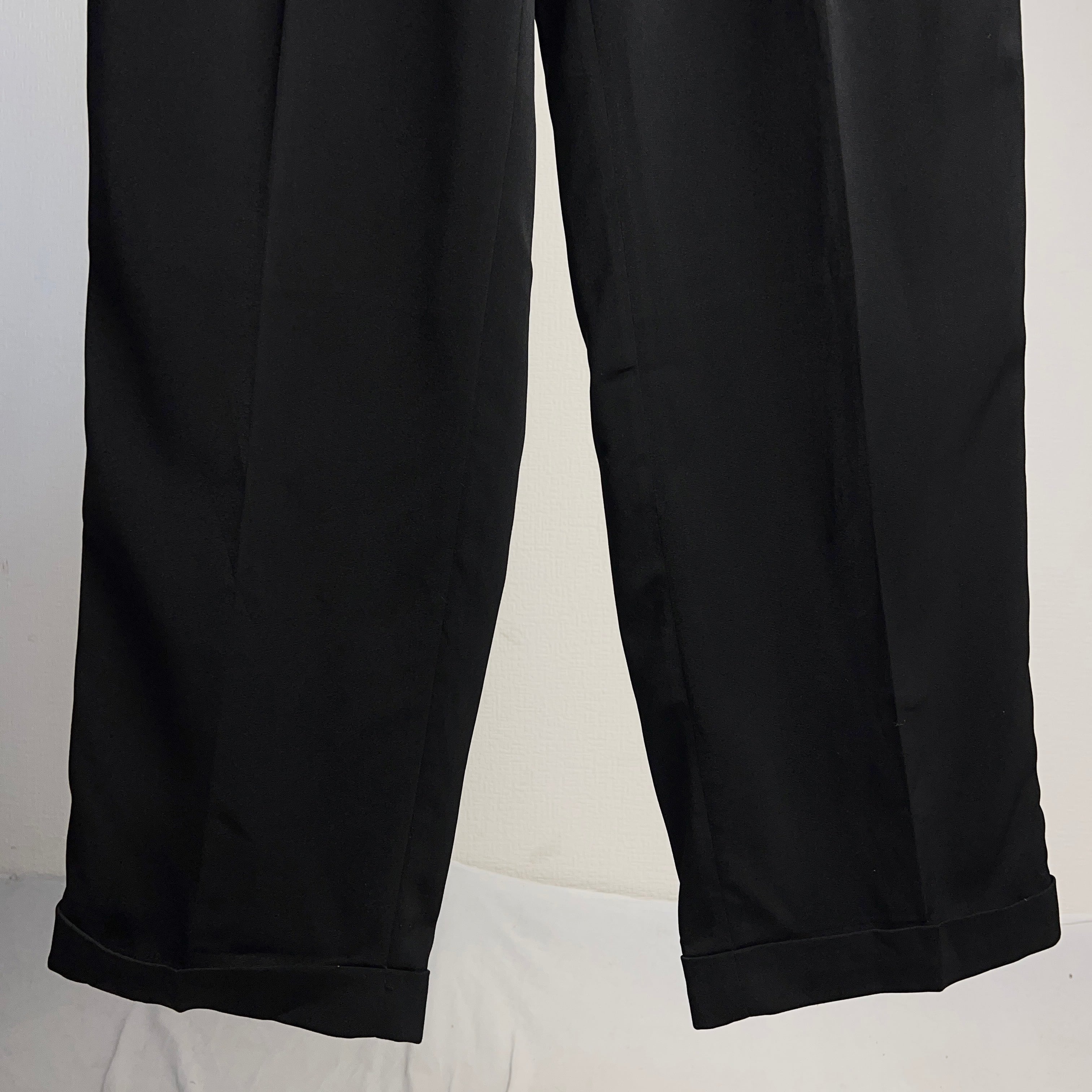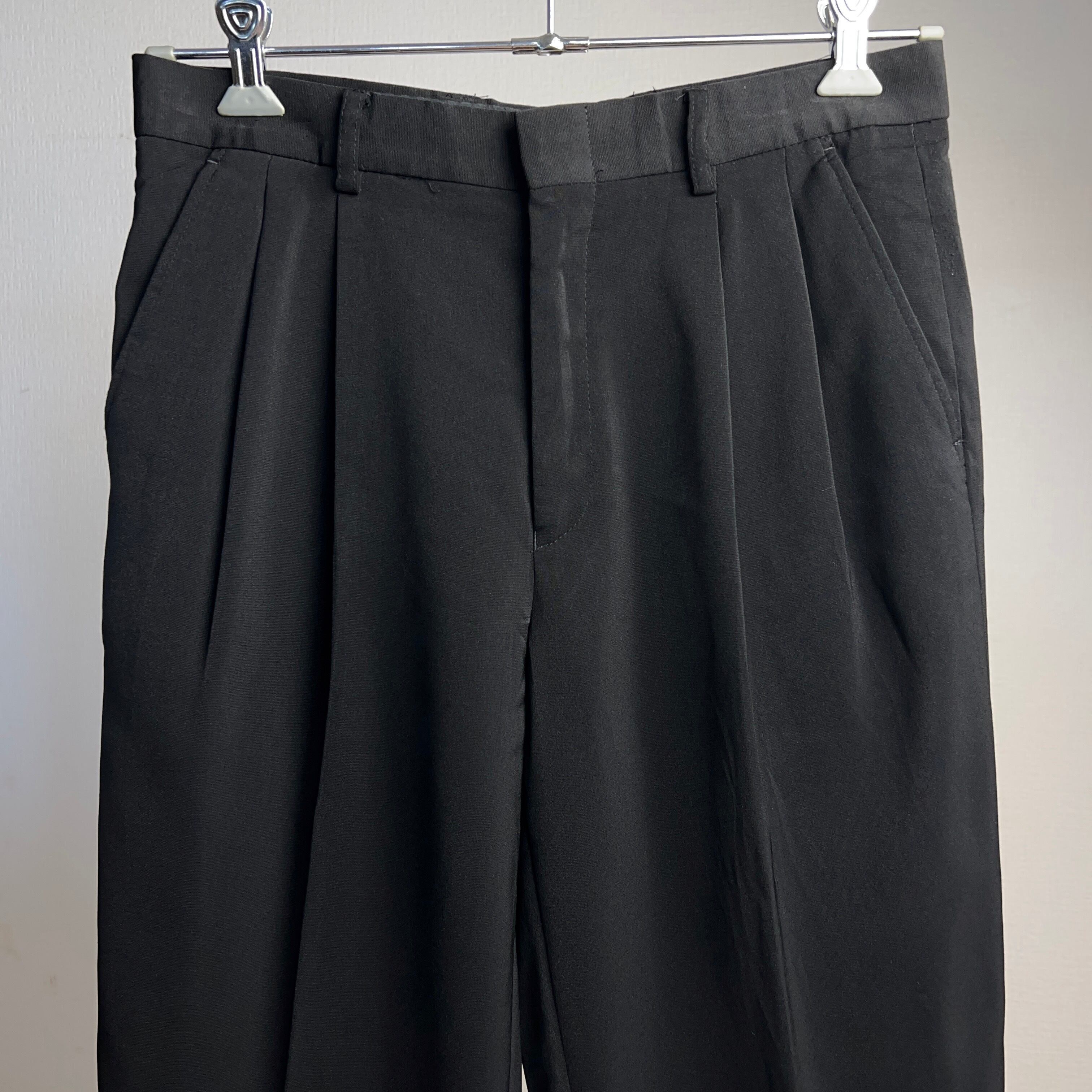 2Tuck Polyester Slacks Black 2タック ポリエステル スラックス ブラック 黒 W32 L30【0929A02】