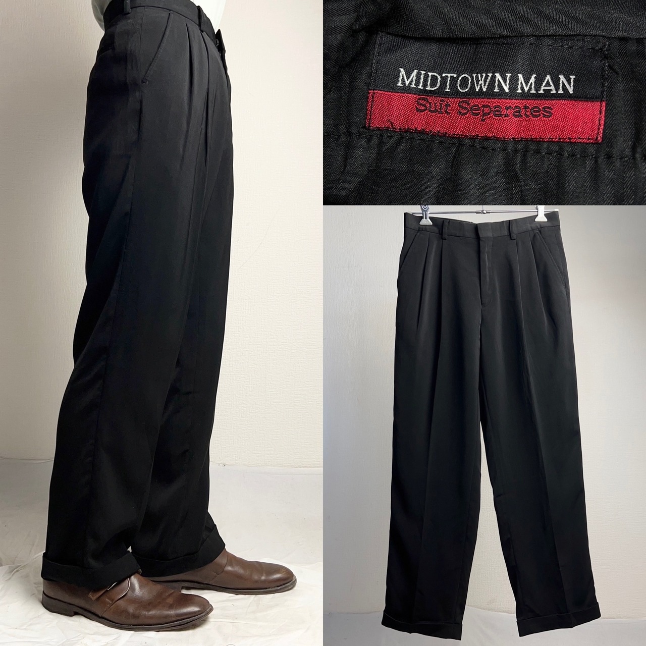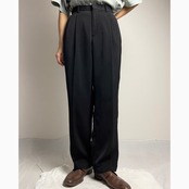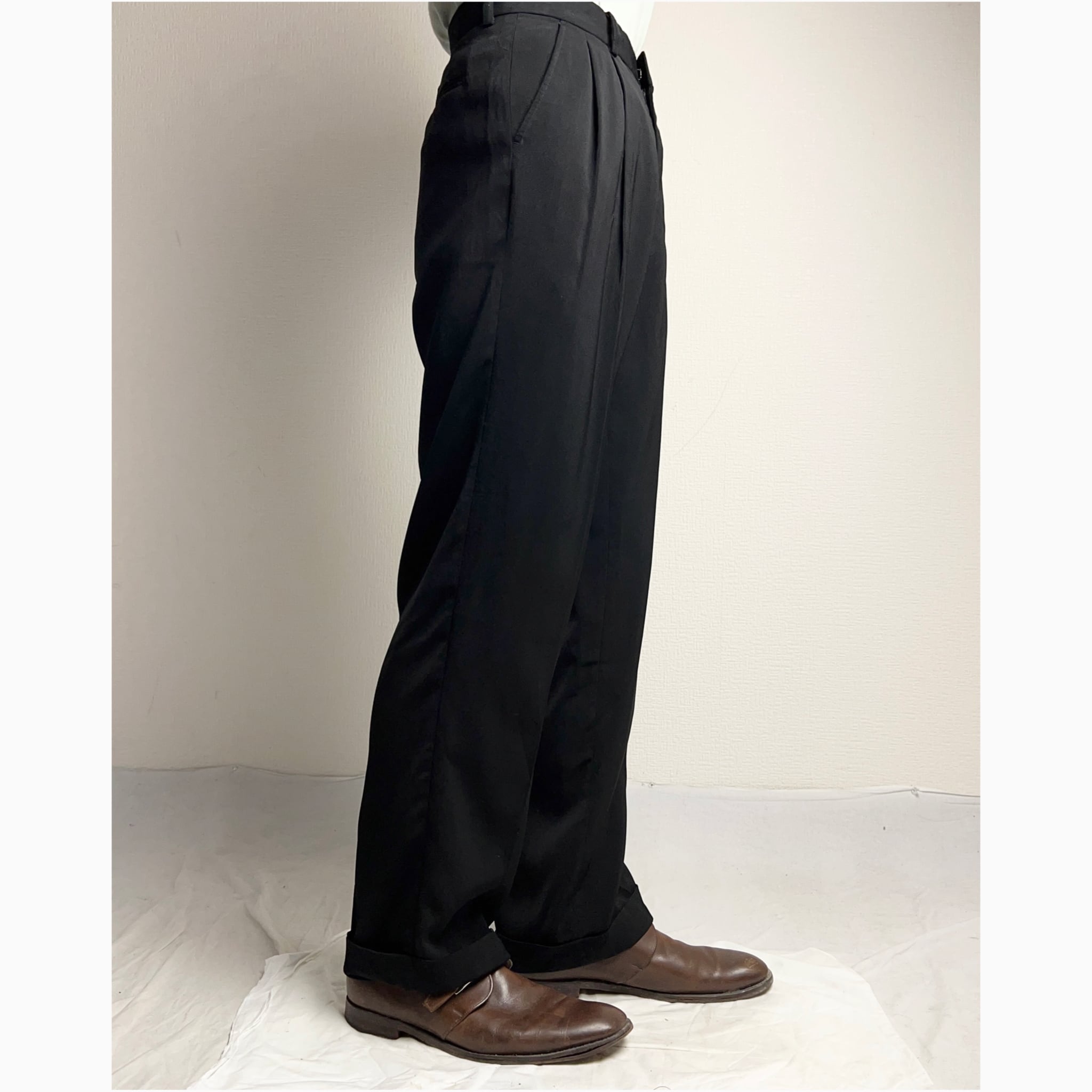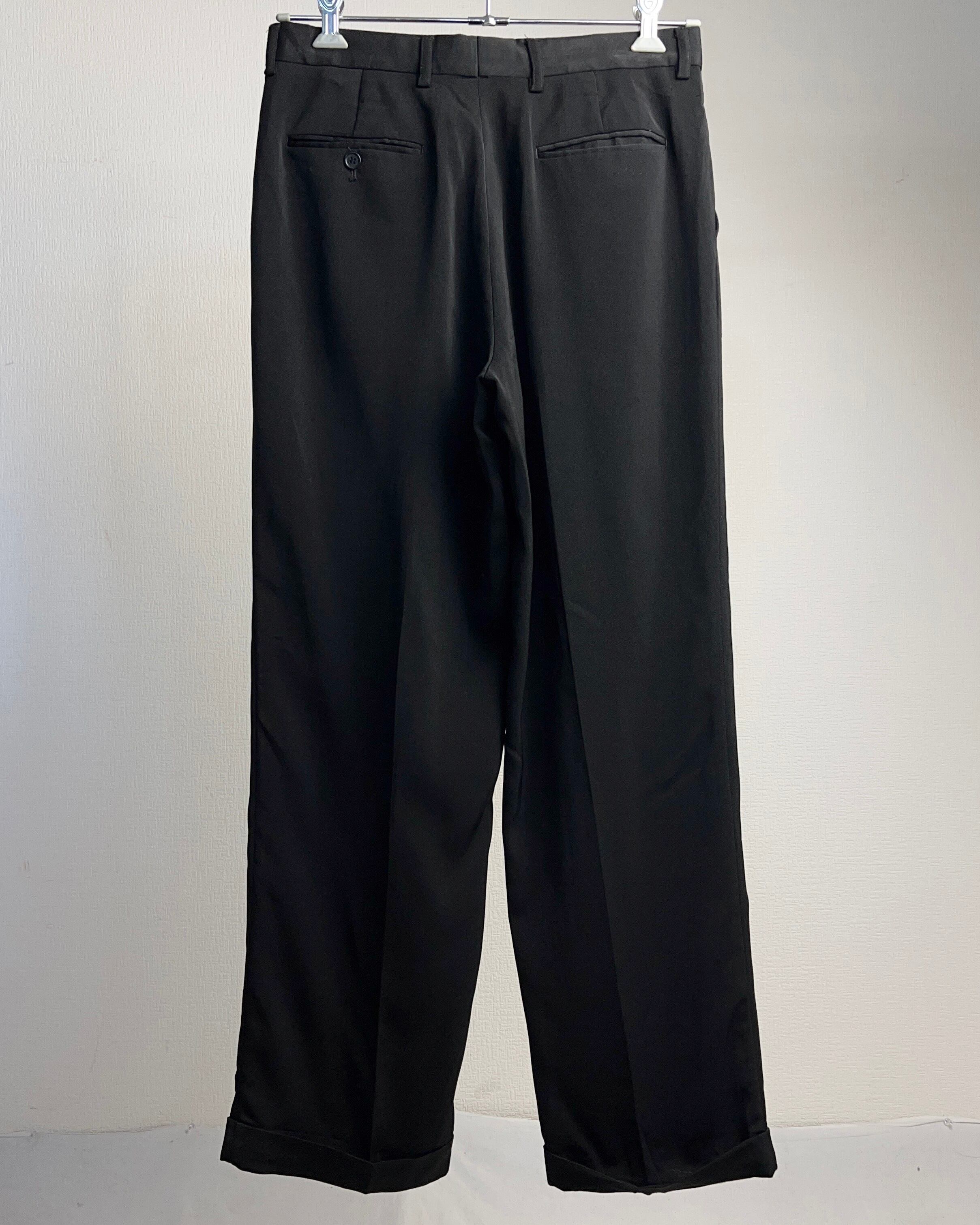 2Tuck Polyester Slacks Black 2タック ポリエステル スラックス ブラック 黒 W32 L30【0929A02】