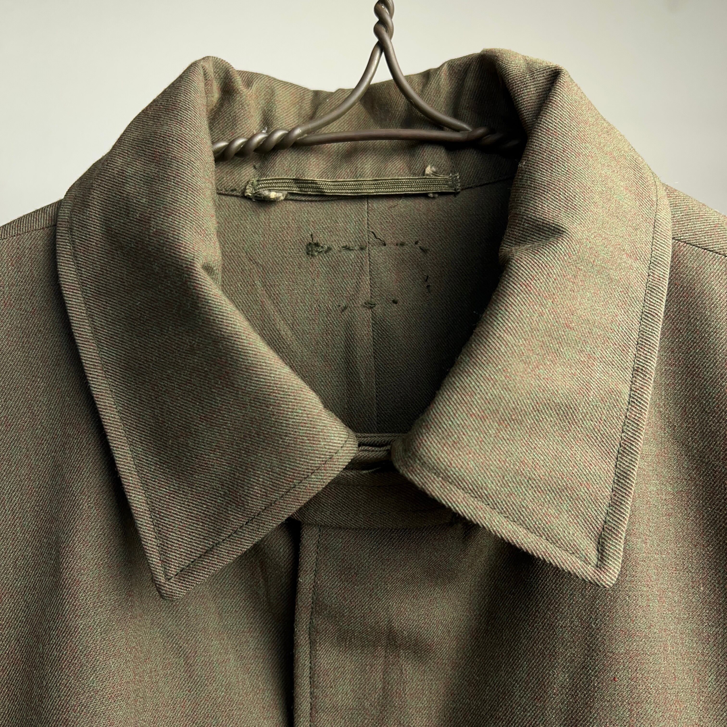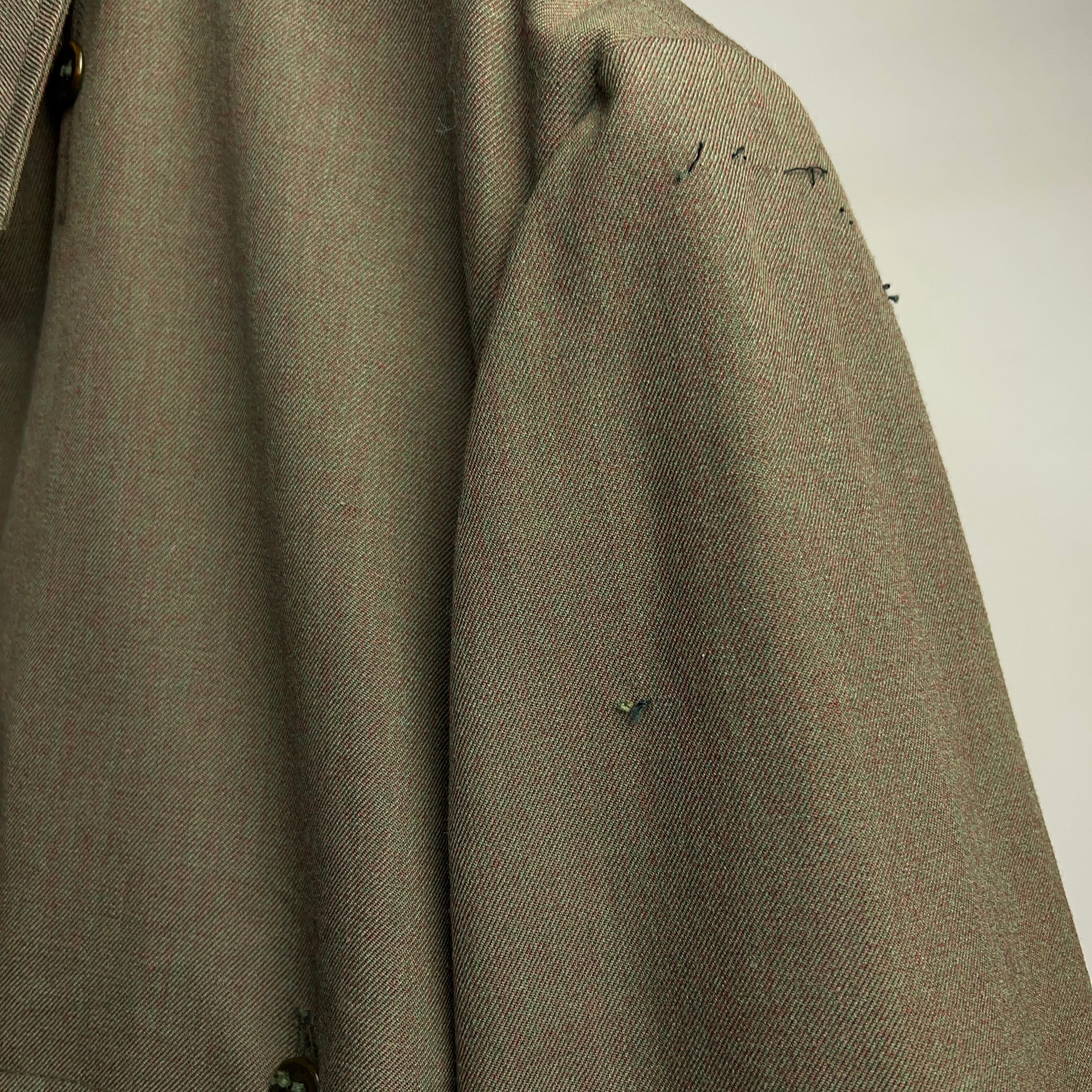 グリーンとワインレッドを混ぜたウール生地でタマムシカラーにも似た複雑で深みのある色合い。
