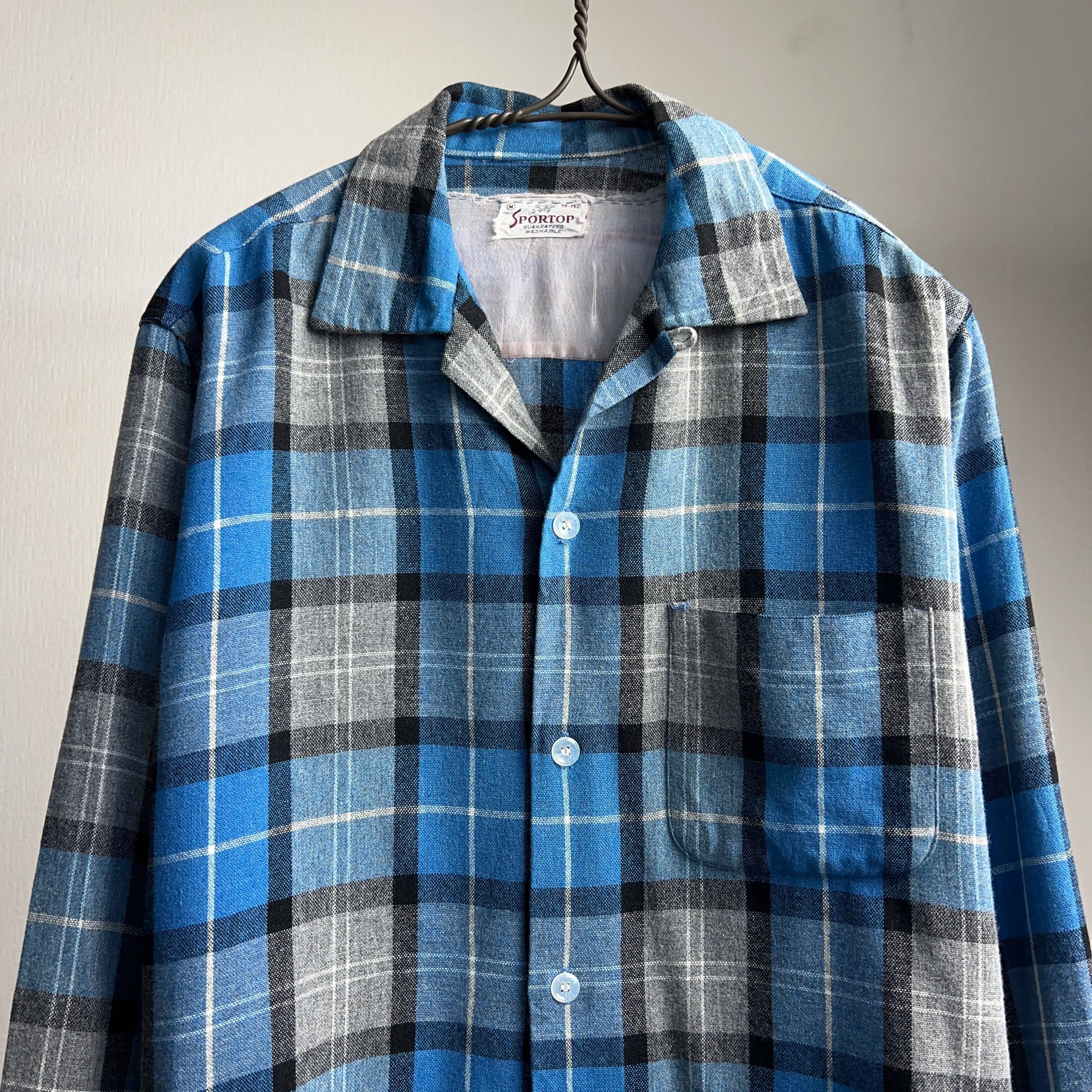 50's~60's “SPORTOP” Wool Plaid Shirt SIZE M 50年代 60年代 ボックスカット チェックシャツ 長袖【0929A33下】【送料無料】