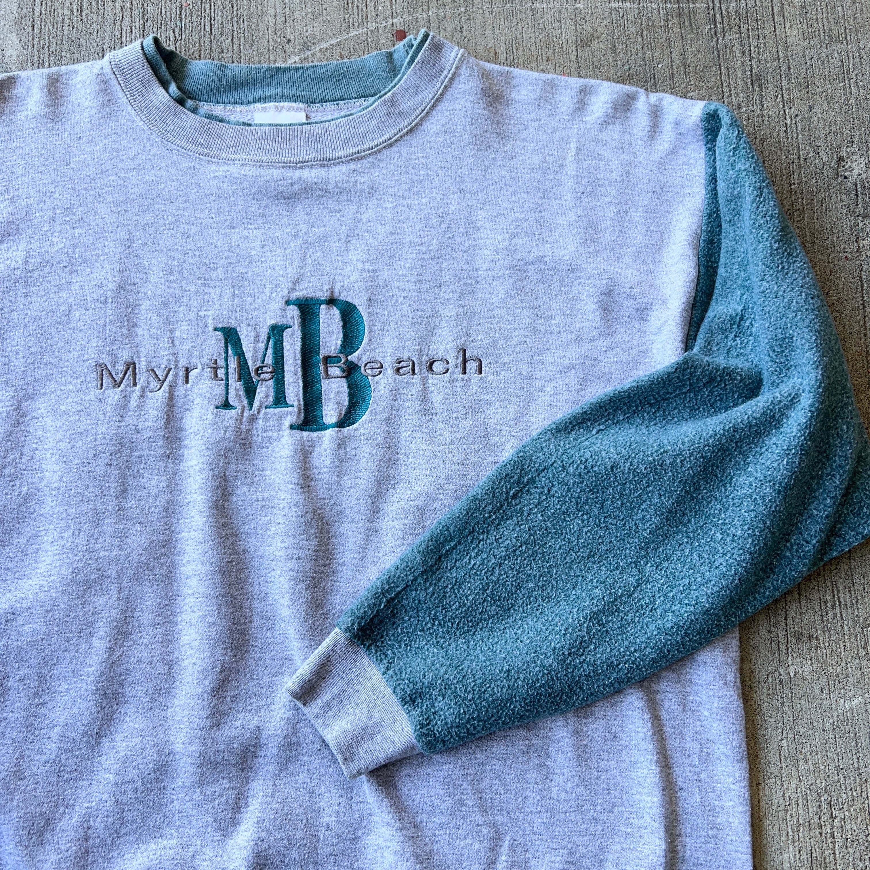 90's ”CAROLINA SMILE” Sweatshirt SIZE M USA製 90年代 刺繍 切り返し スウェット 裏起毛【3000円均一商品】【2点以上の購入で1000円OFF】【TH0184】