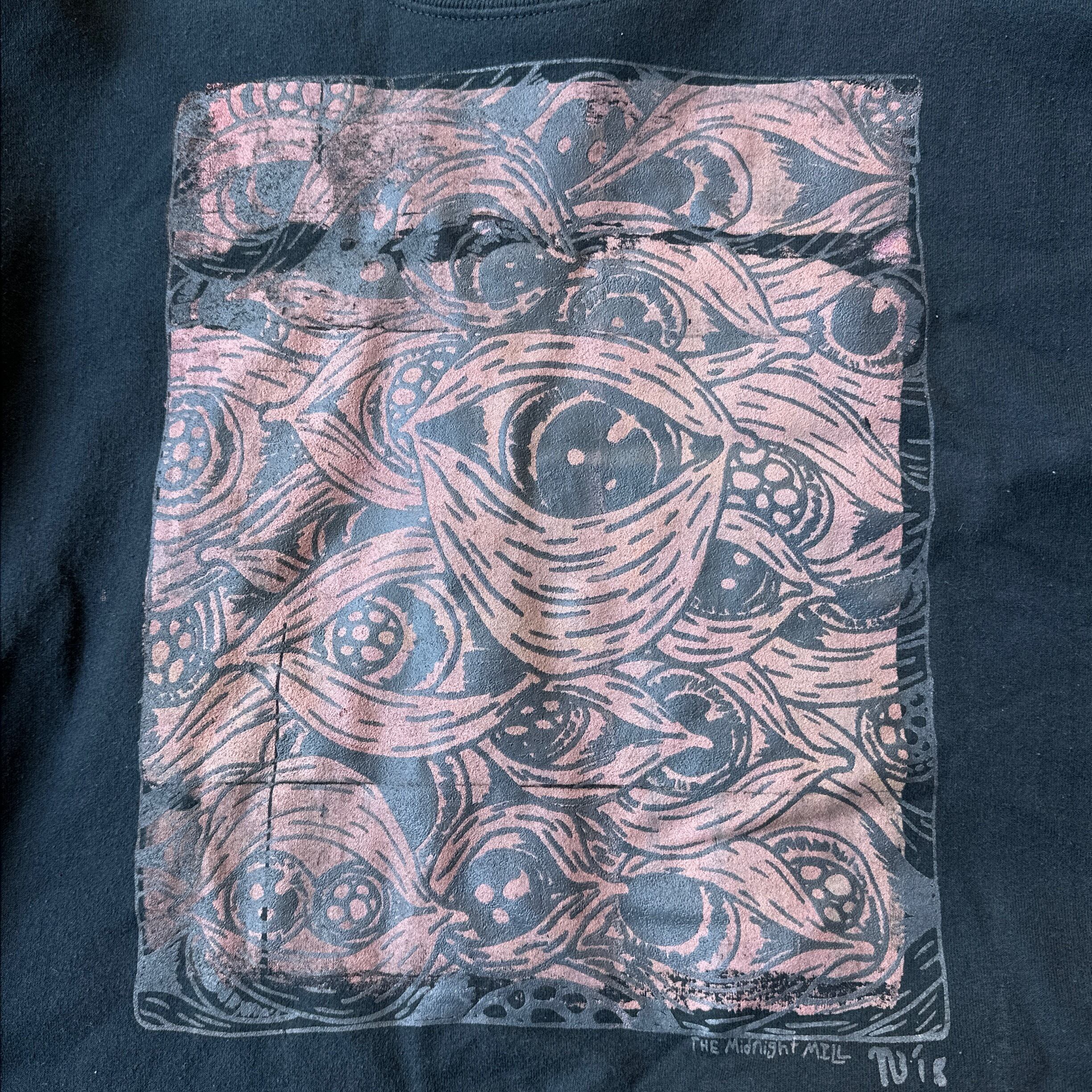ブラックボディに目玉のモチーフが目を惹く芸術的な一枚。