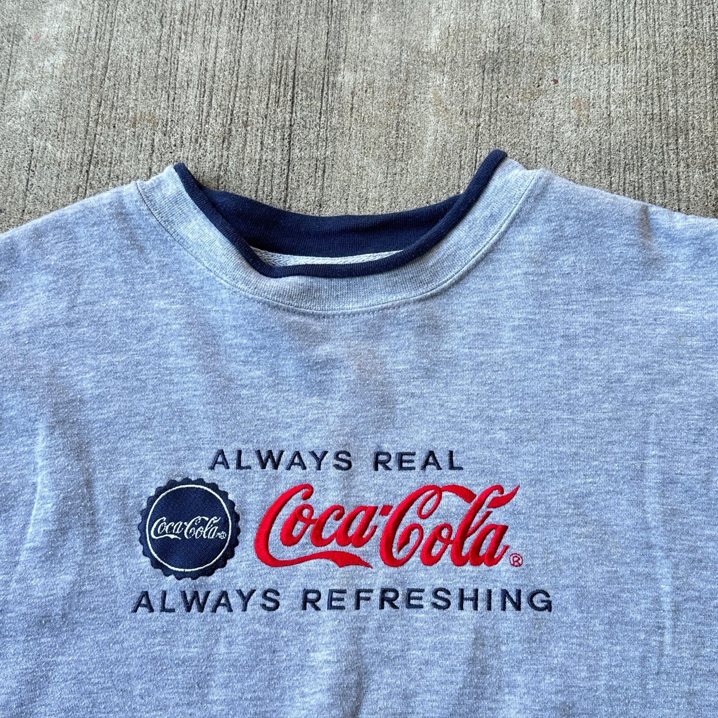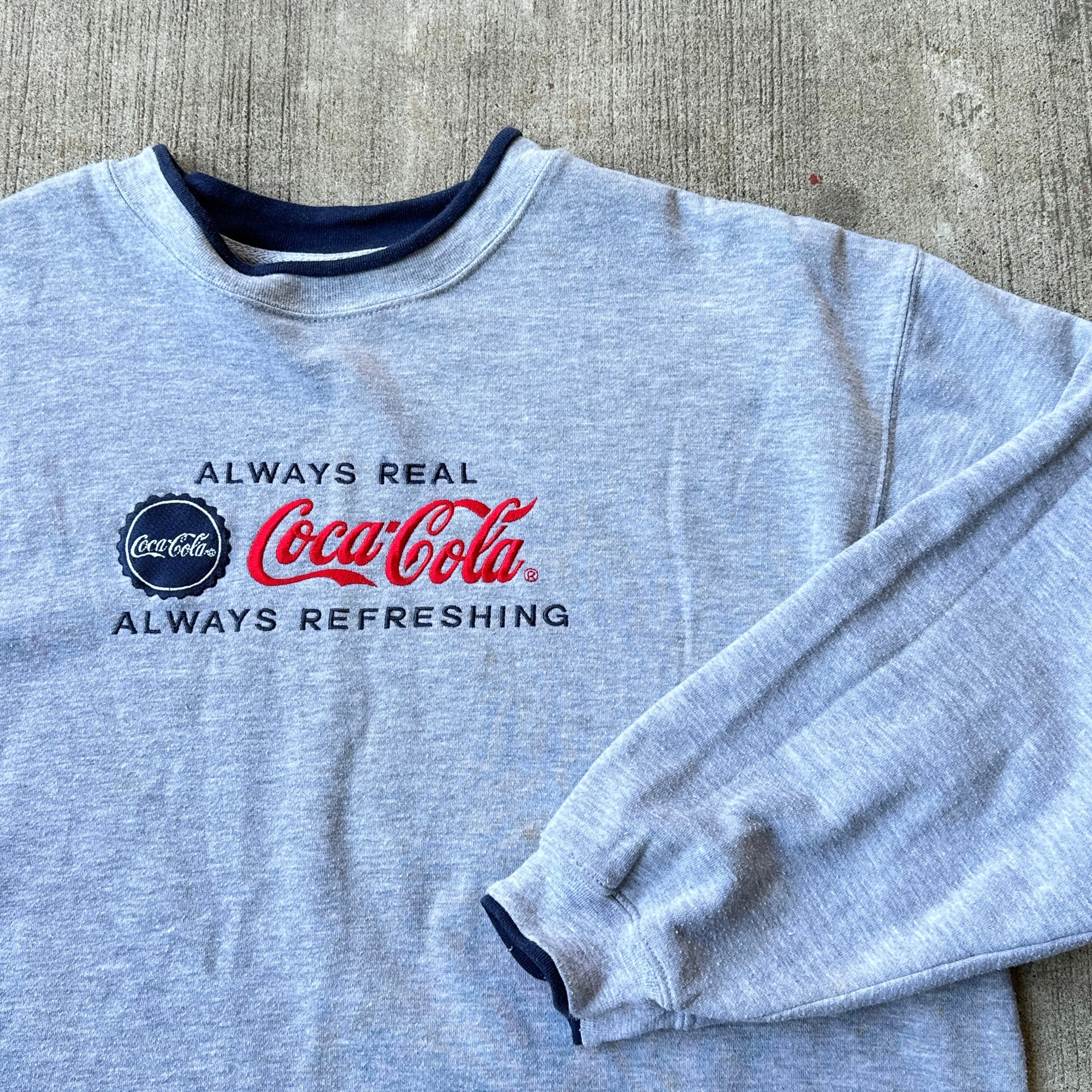 コカコーラのロゴと缶バッジの刺繍が入ったスウェット。