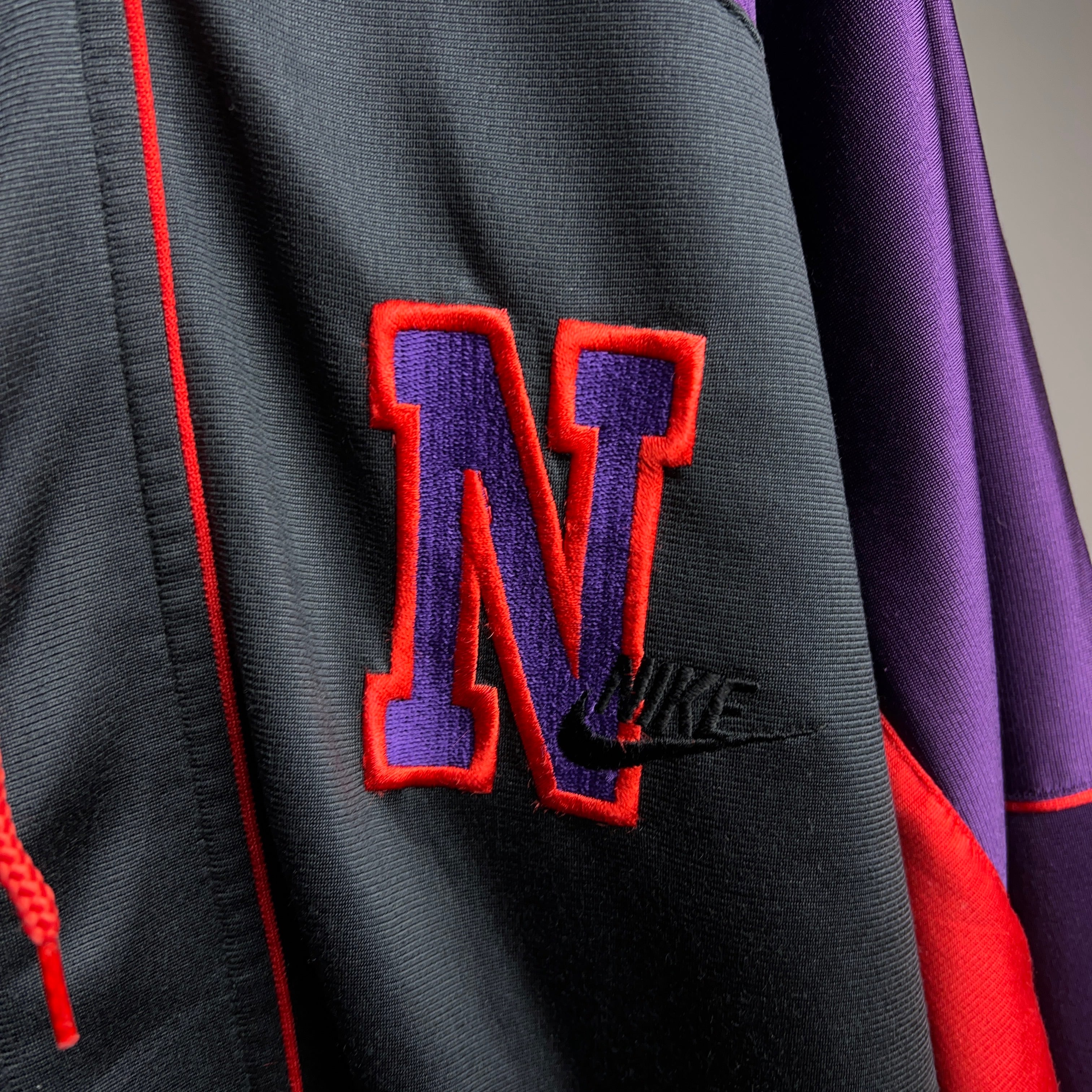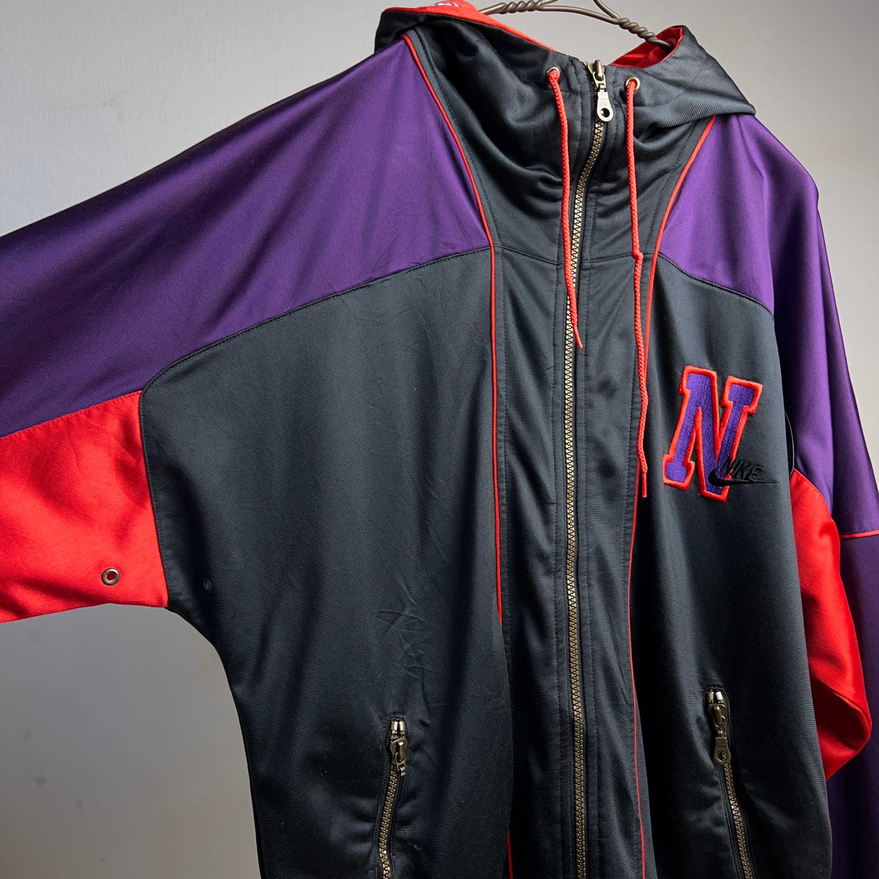 90年代ナイキ銀タグのフード付きトラックジャケット。