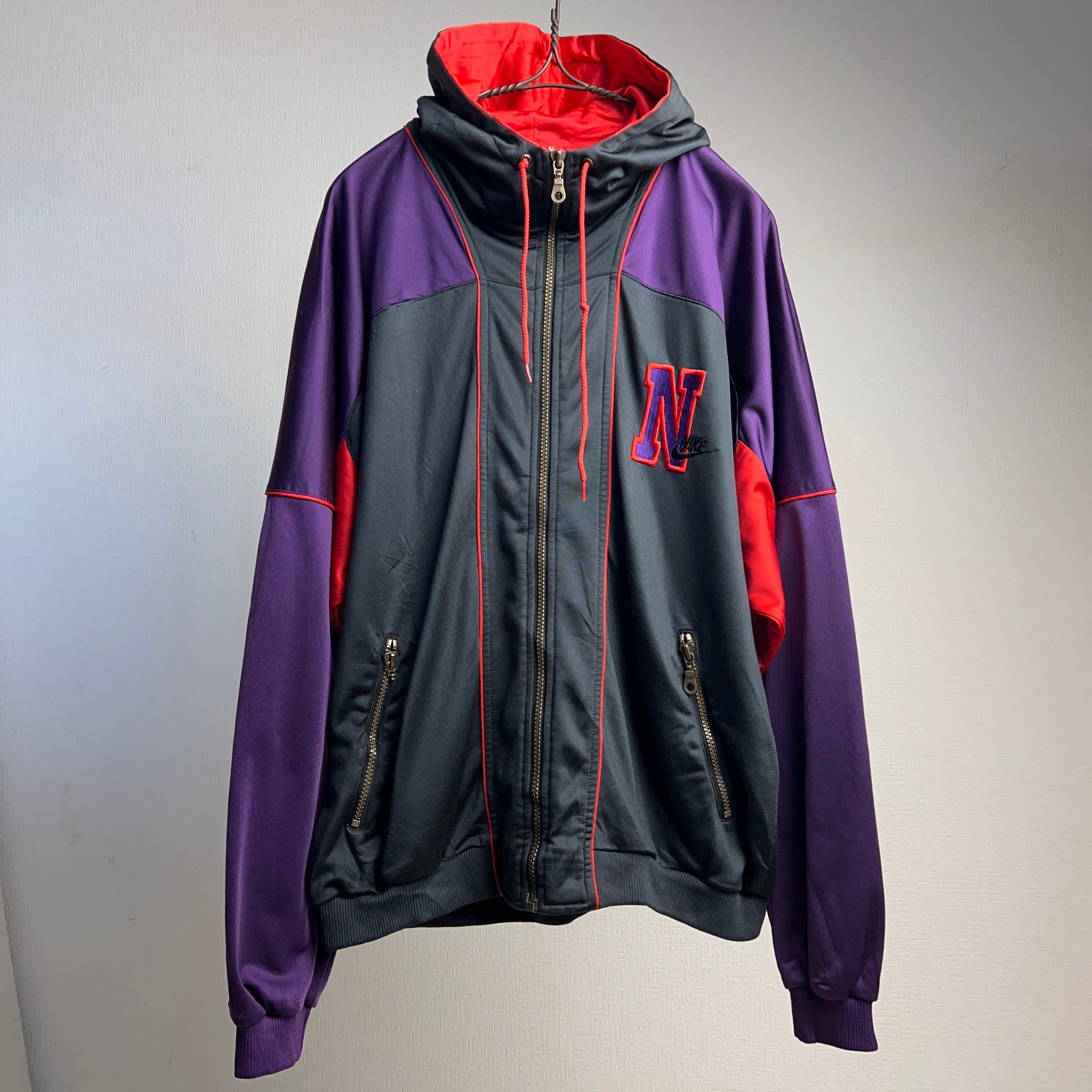 90's NIKE TRACK JACKET HOODIE 90年代 ナイキ トラックジャケット パーカー 刺繍 銀タグ【1000A54】【送料無料】