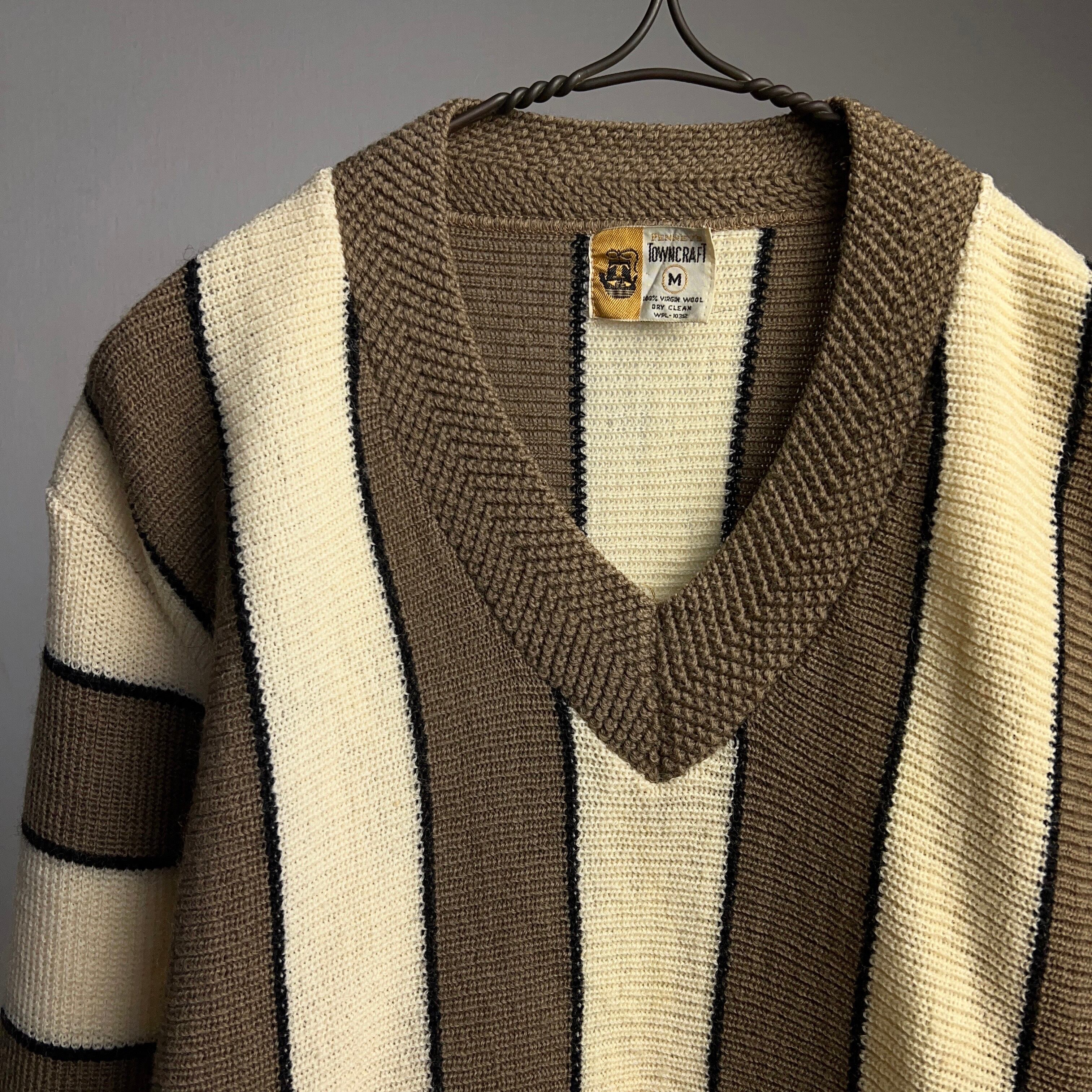 60's TOWNCRAFT Wool Knit Sweater Stripe SIZE M 60年代 タウンクラフト ウールニットセーター ストライプ チルデン【1000A84】【送料無料】