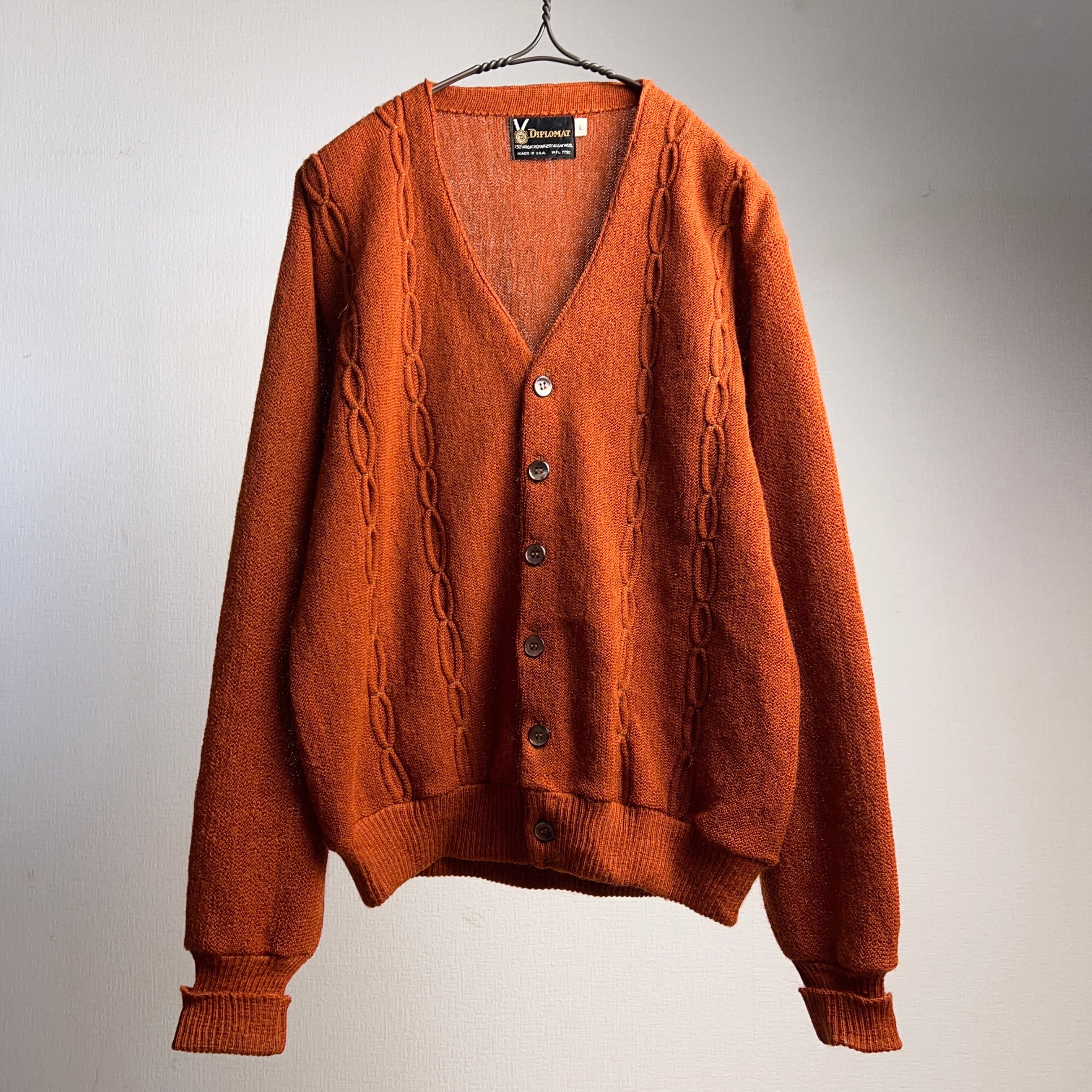 60's DIPLOMAT MOHAIR75% Knit Cardigan USA製 SIZE L 60年代 モヘアニットカーディガン オレンジ 【1000A87】【送料無料】