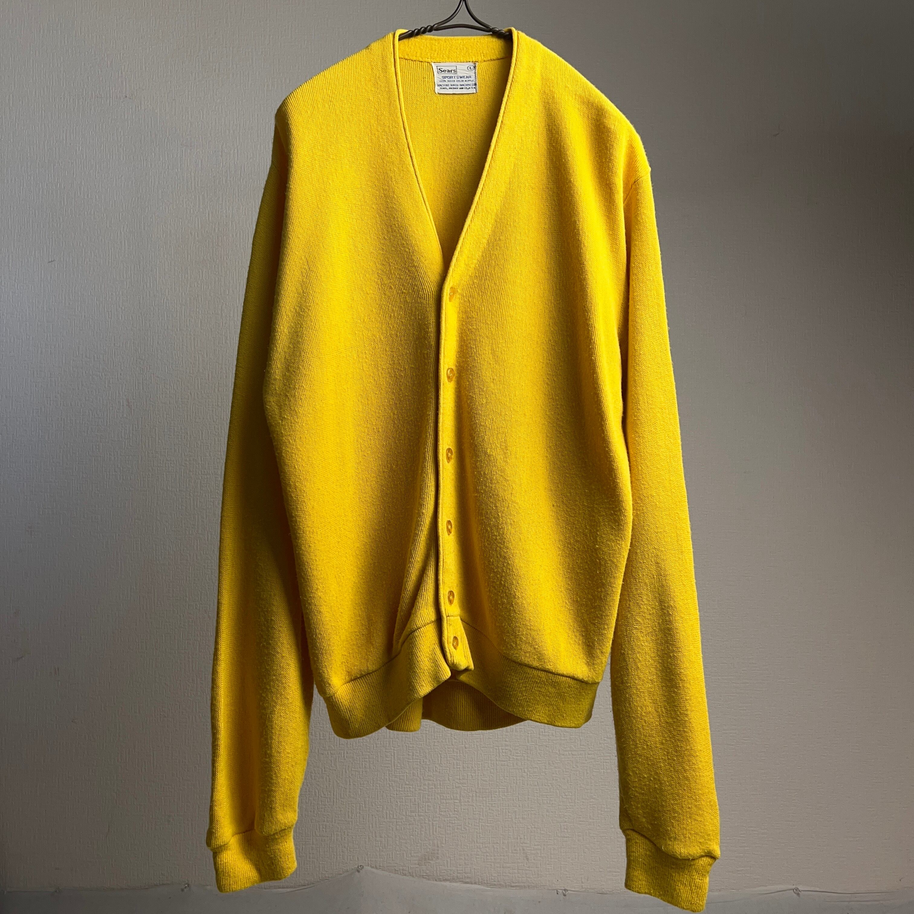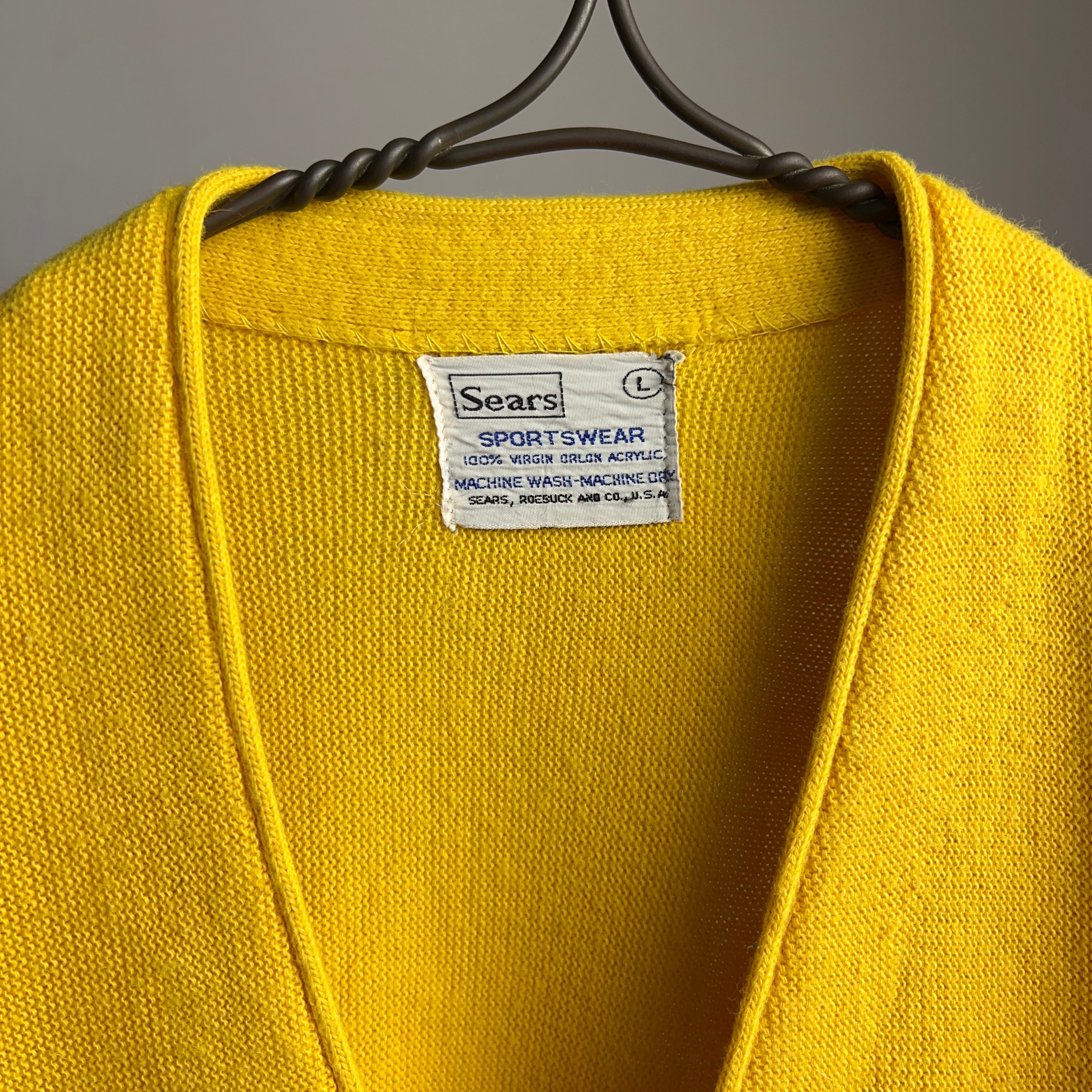 70's SEARS Knit Cardigan Yellow SIZE L 70年代 シアーズ アクリルニットカーディガン イエロー【1000A89】【送料無料】