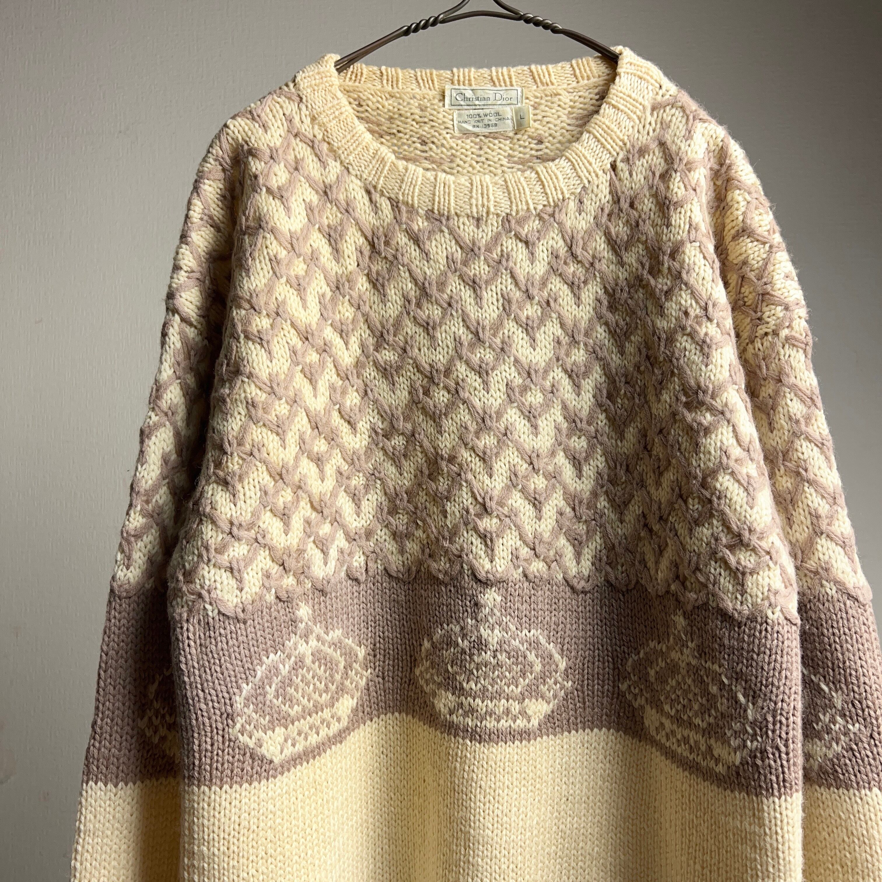 "Christian Dior" Design Hand Knit Sweater SIZE L クリスチャンディオール ウールニットセーター ハンドニット【1000A93】