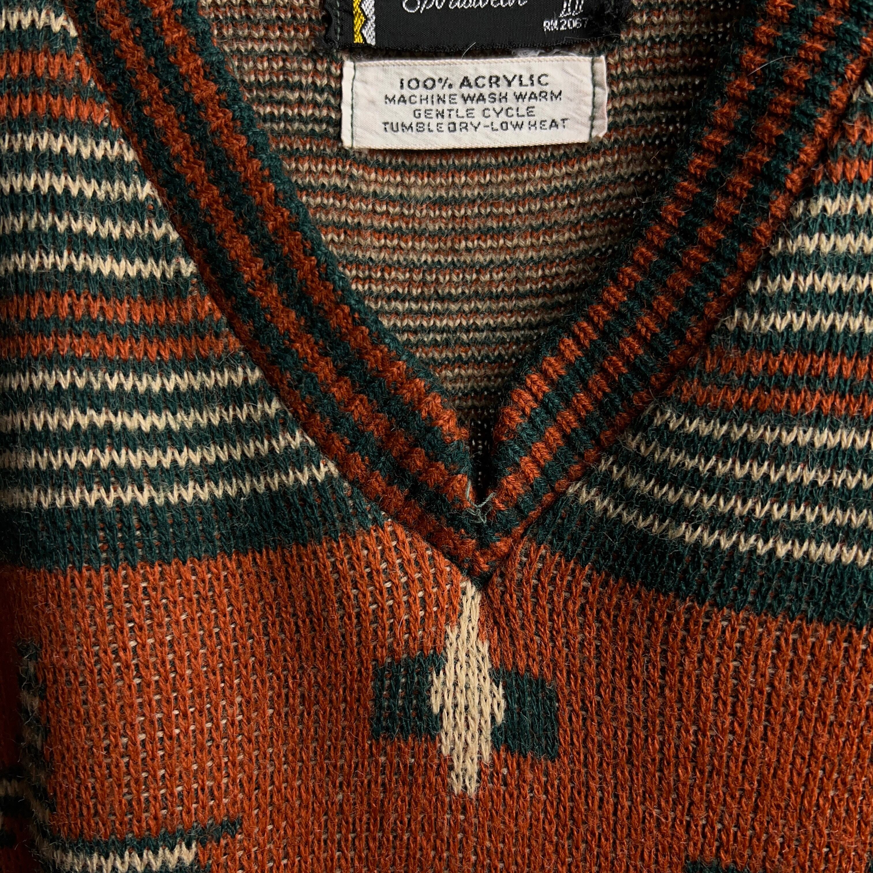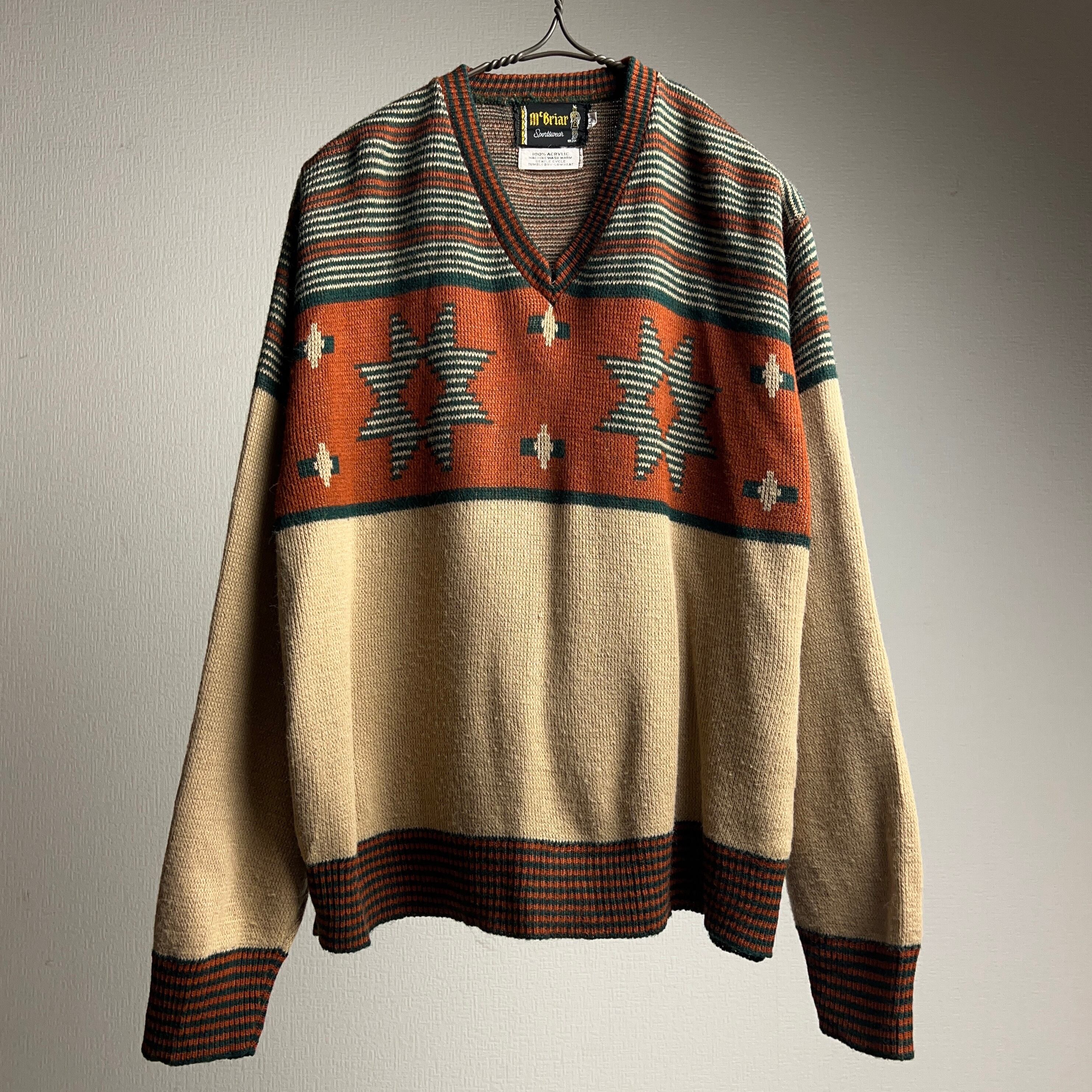 60's~70's McBriar Design Knit Sweater SIZE L 60年代 70年代 総柄 ニットセーター レトロ【1000A95】【送料無料】