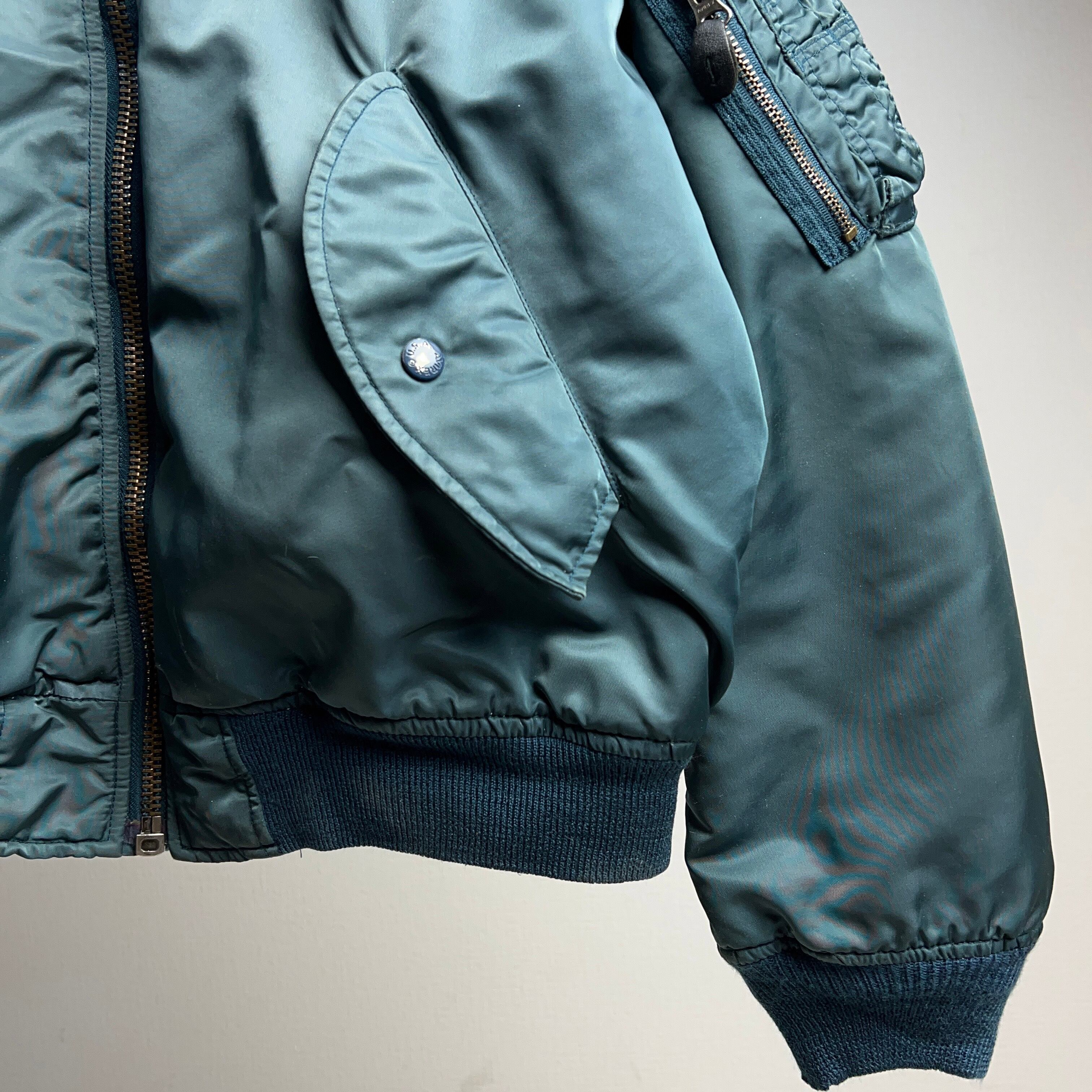 こちらは褪せたブルーグリーンの色合いがクールなMA-1フライトジャケット。