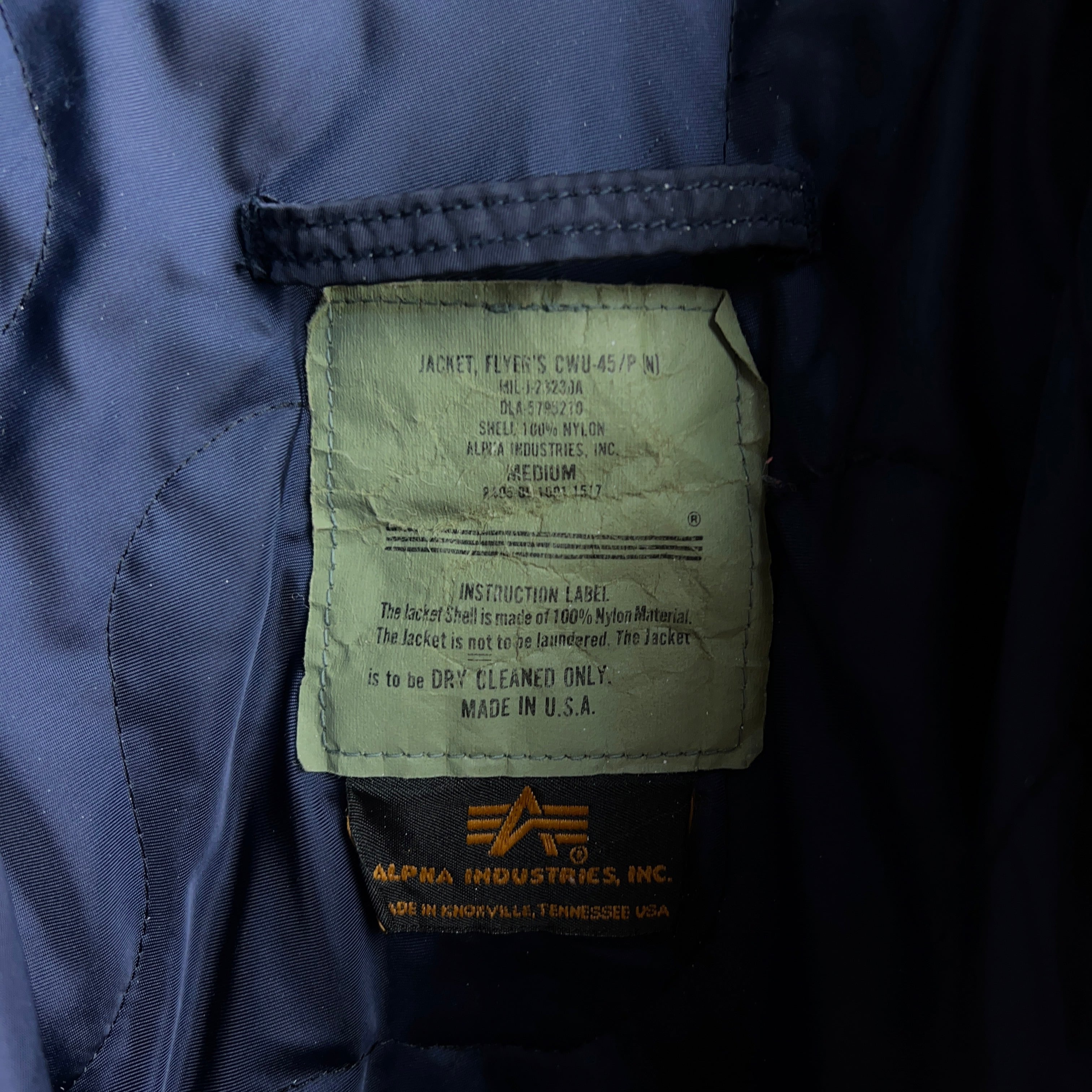 ALPHA INDUSTRIES CWU-45/P FLIGHT JACKET SIZE MEDIUM NAVY【1000A110】【送料無料】