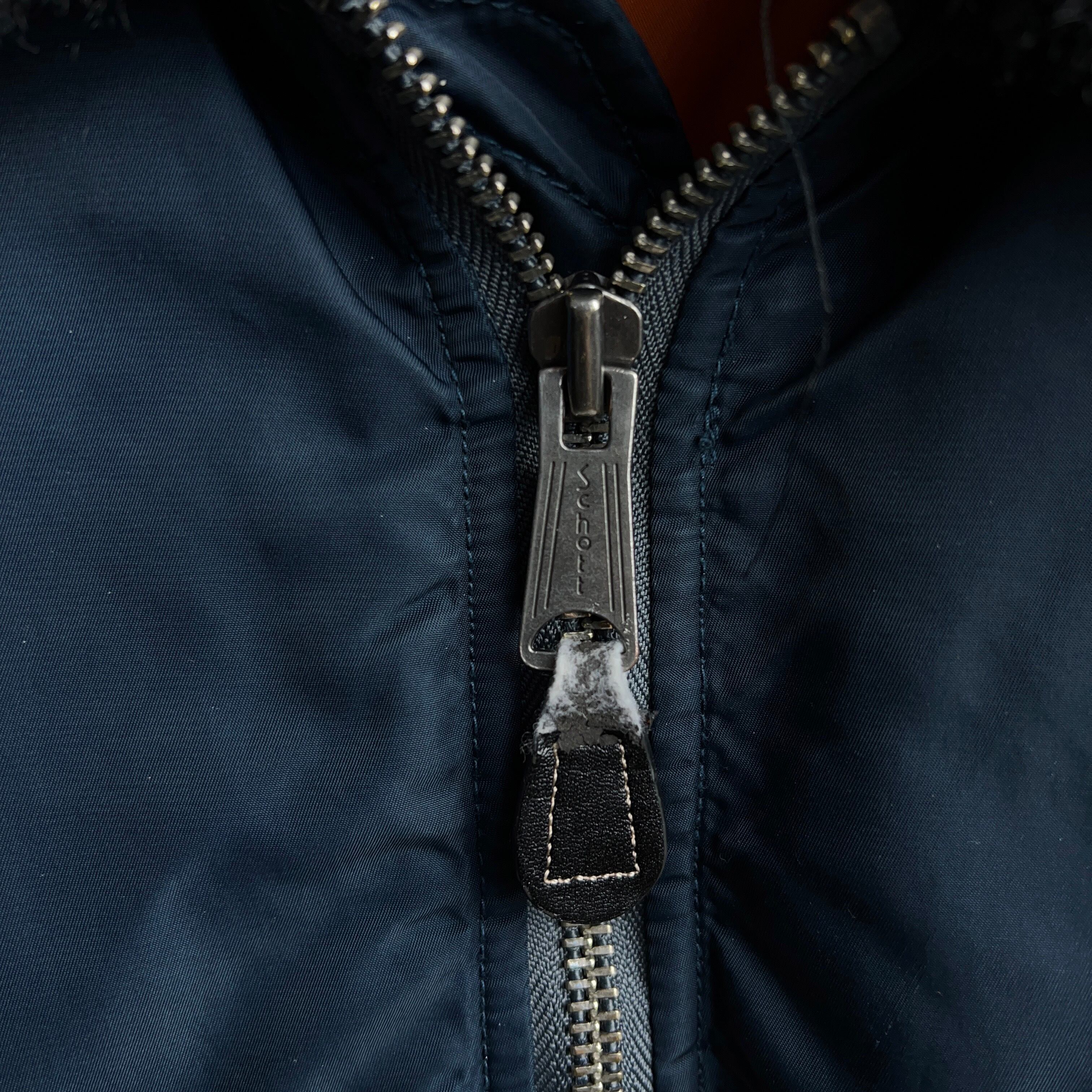 ボアは外せる仕様ですが、前の持ち主が縫いつけています。(糸を切れば外せます)