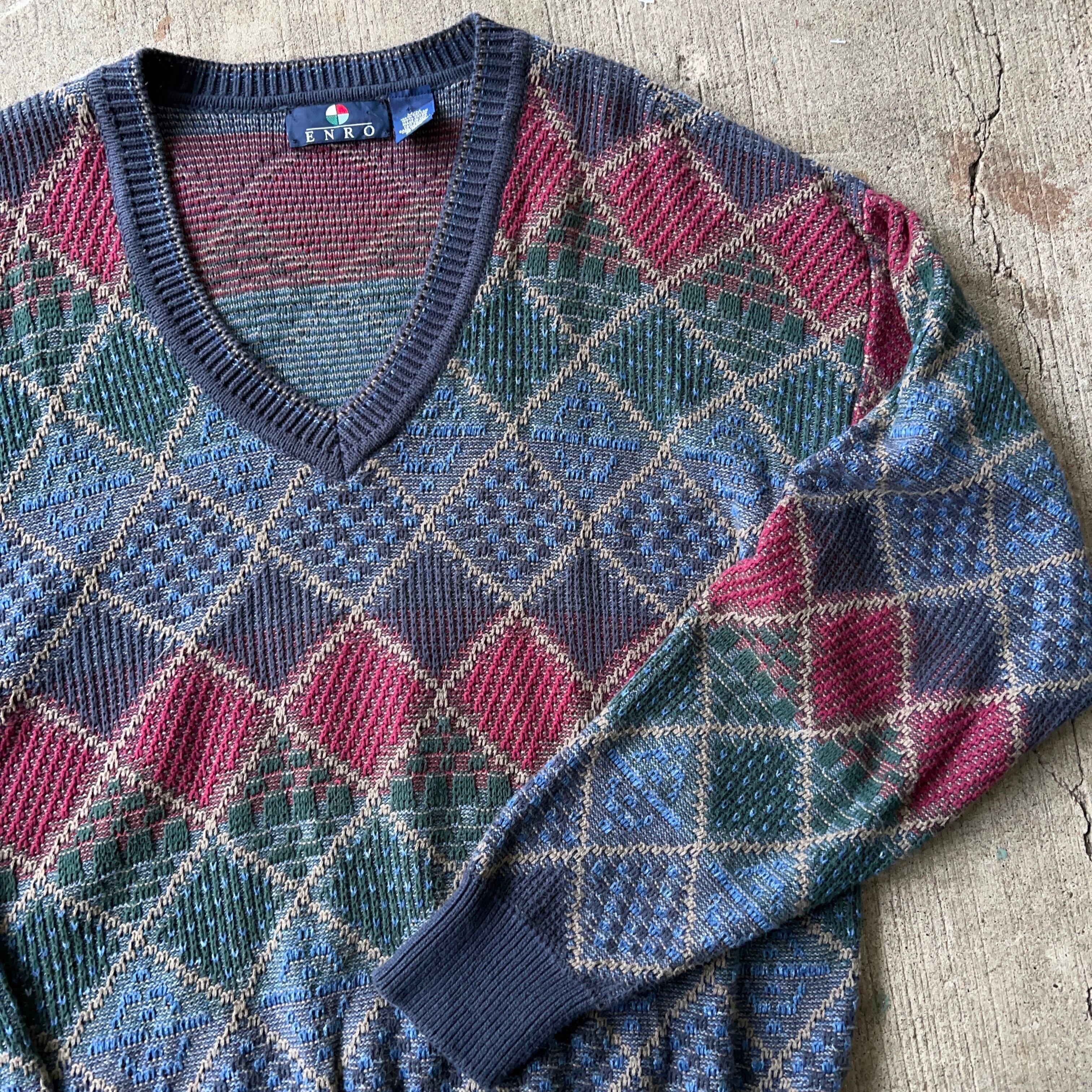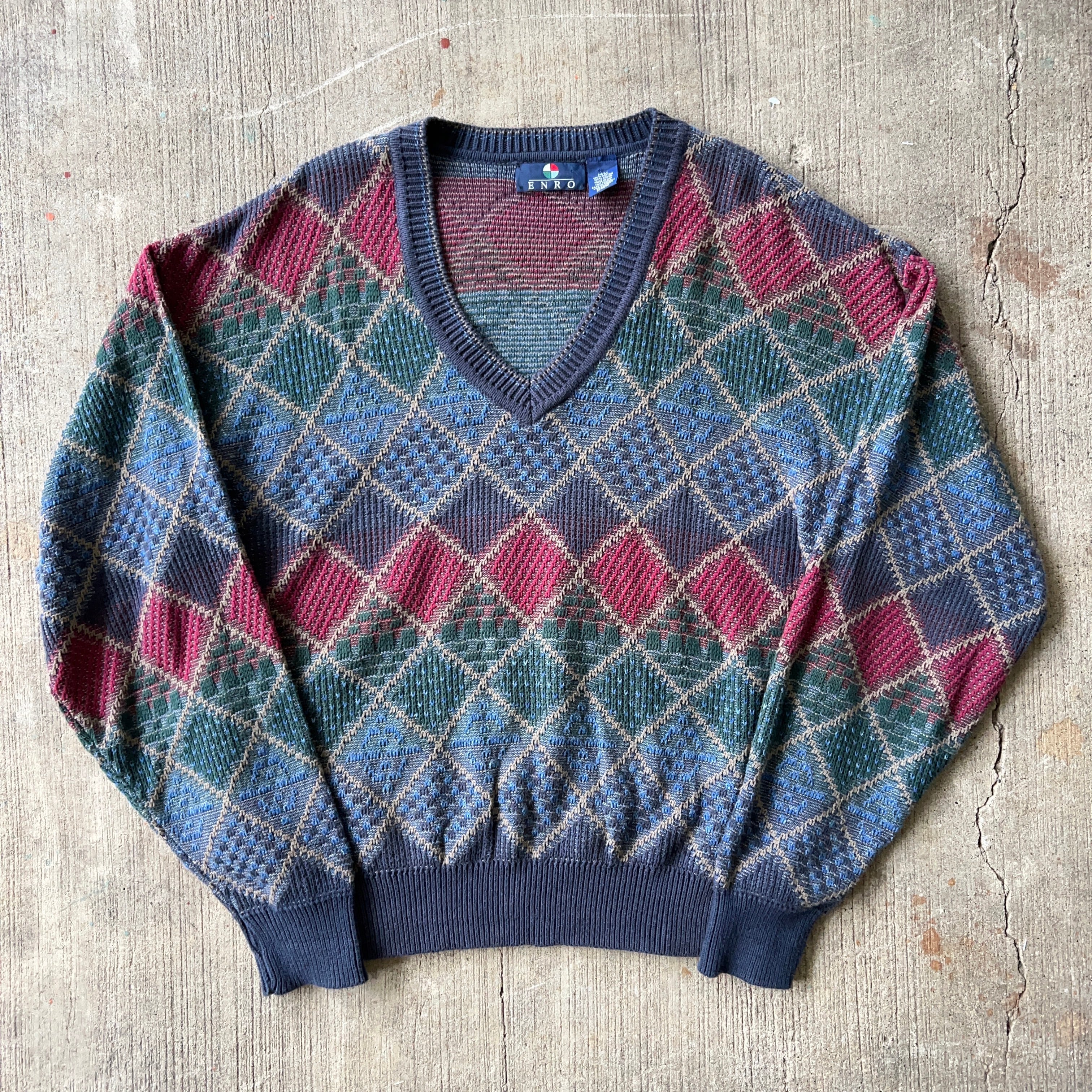 “ENRO” Design Knit Sweater SIZE M 総柄 デザインニット セーター【3000円均一商品】【2点以上の購入で1000円OFF】【TH0305】