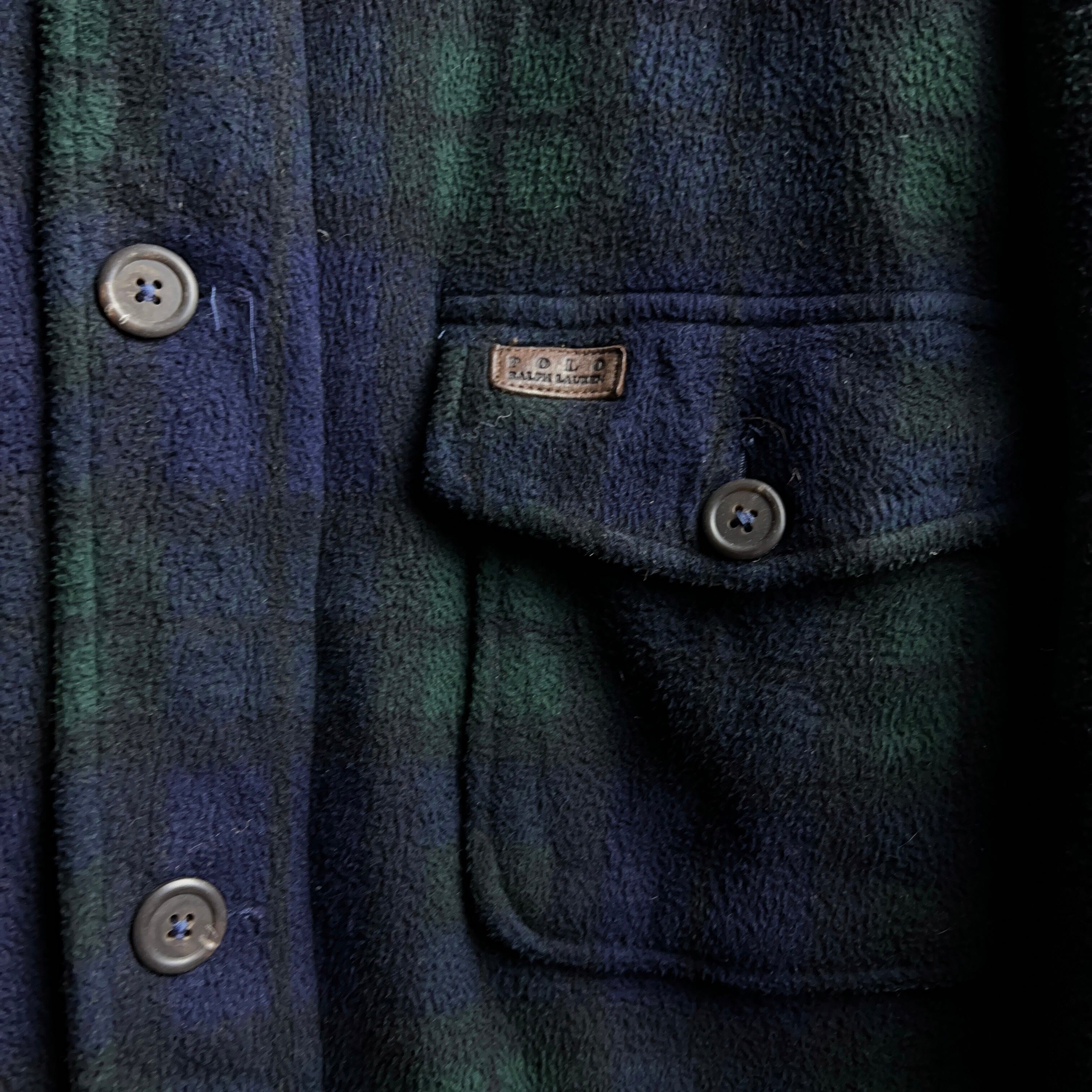 90's Polo by Ralph Lauren Plaid Fleece Jacket USA製 SIZE L 90年代 ポロラルフローレン フリースジャケット チェック柄 ブラックウォッチ【1000A287下】【送料無料】