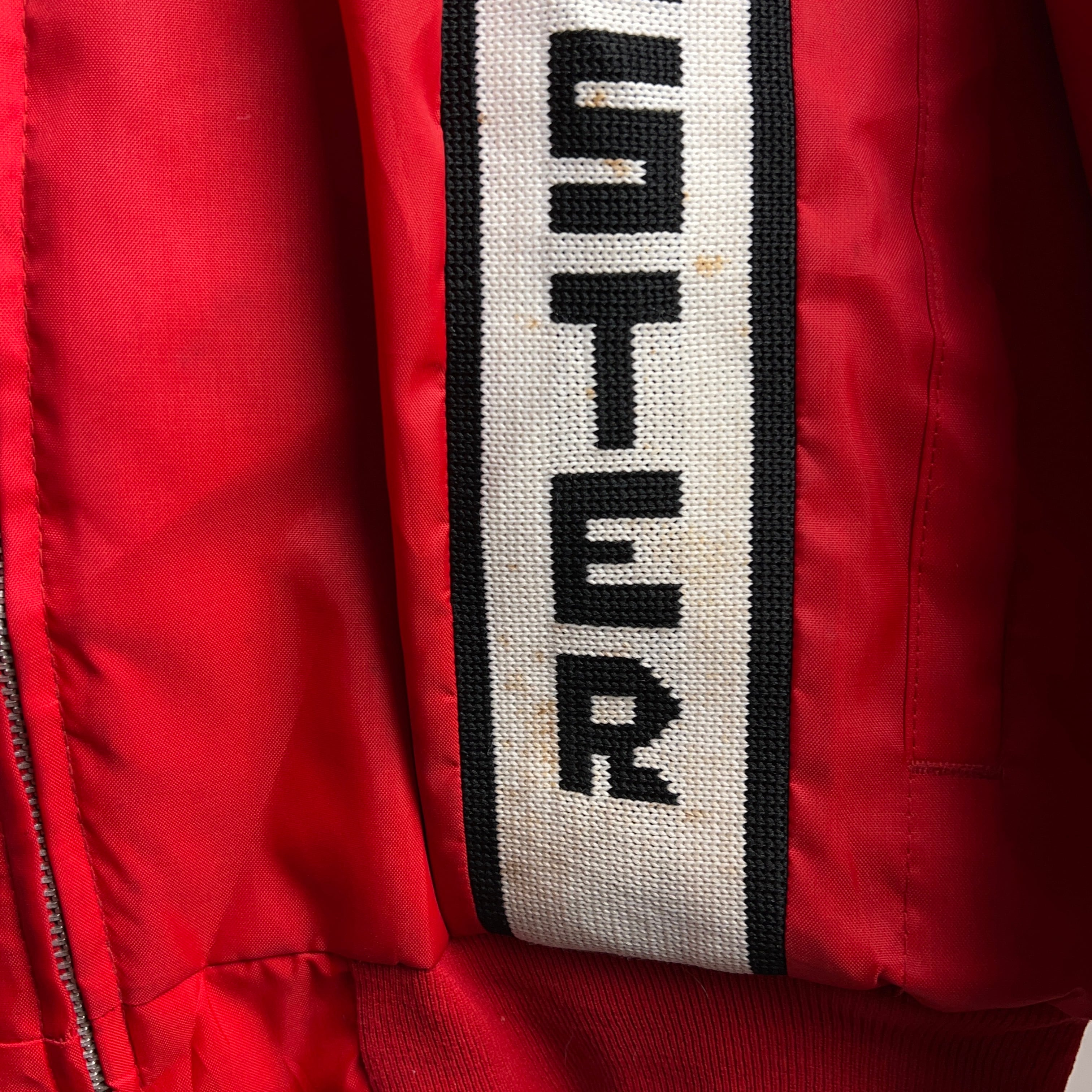 アメリカの車や農業機械のメーカーであるINTERNATIONAL HARVESTERのデザインが入ったナイロンジャケット。裏地はボアライナー付き。