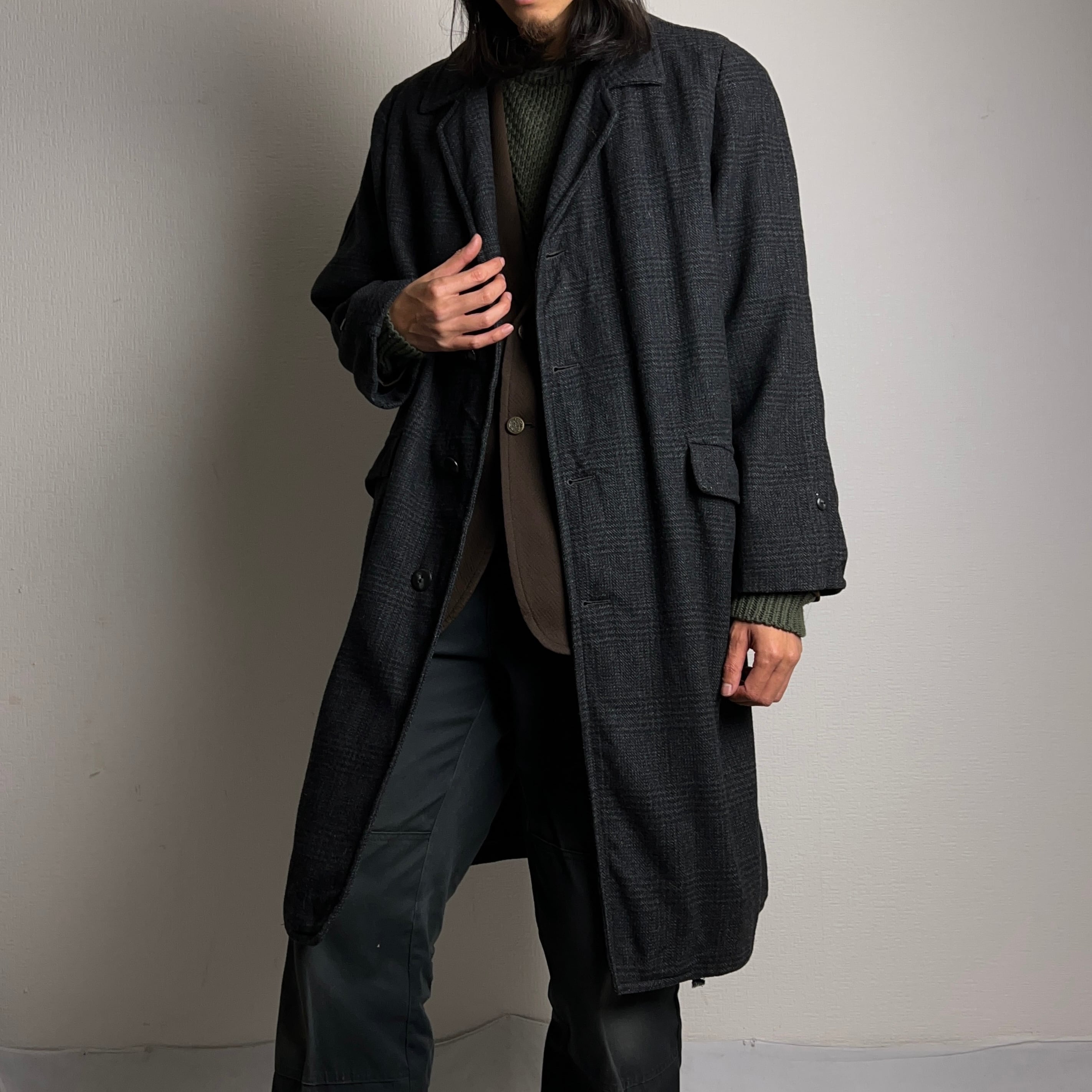 60's Vintage Plaid Wool Coat 60年代 ウールチェックコート チェスターコート【1000A336】【送料無料】