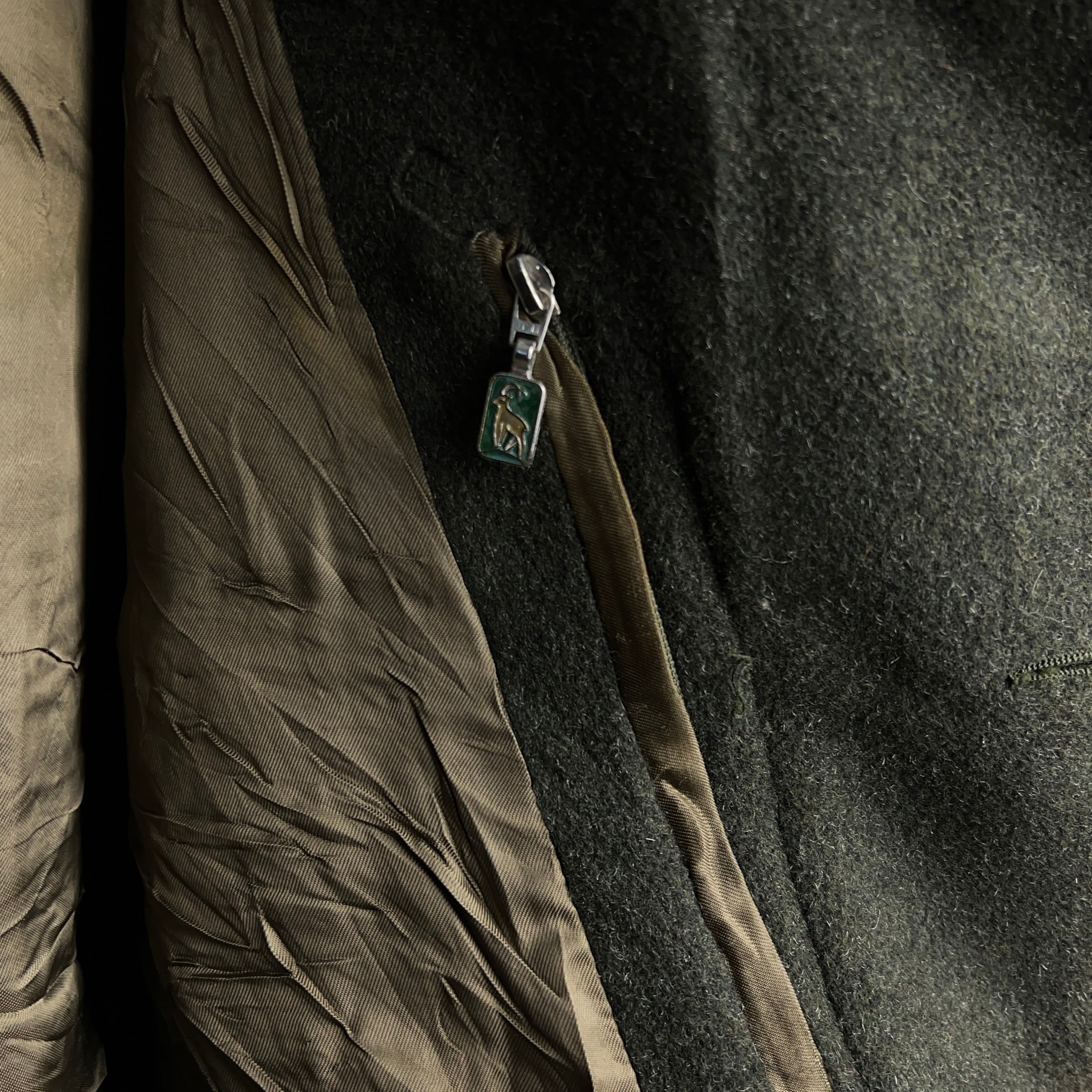 深いグリーンカラーや裏地のチェック柄など魅力的な一着。