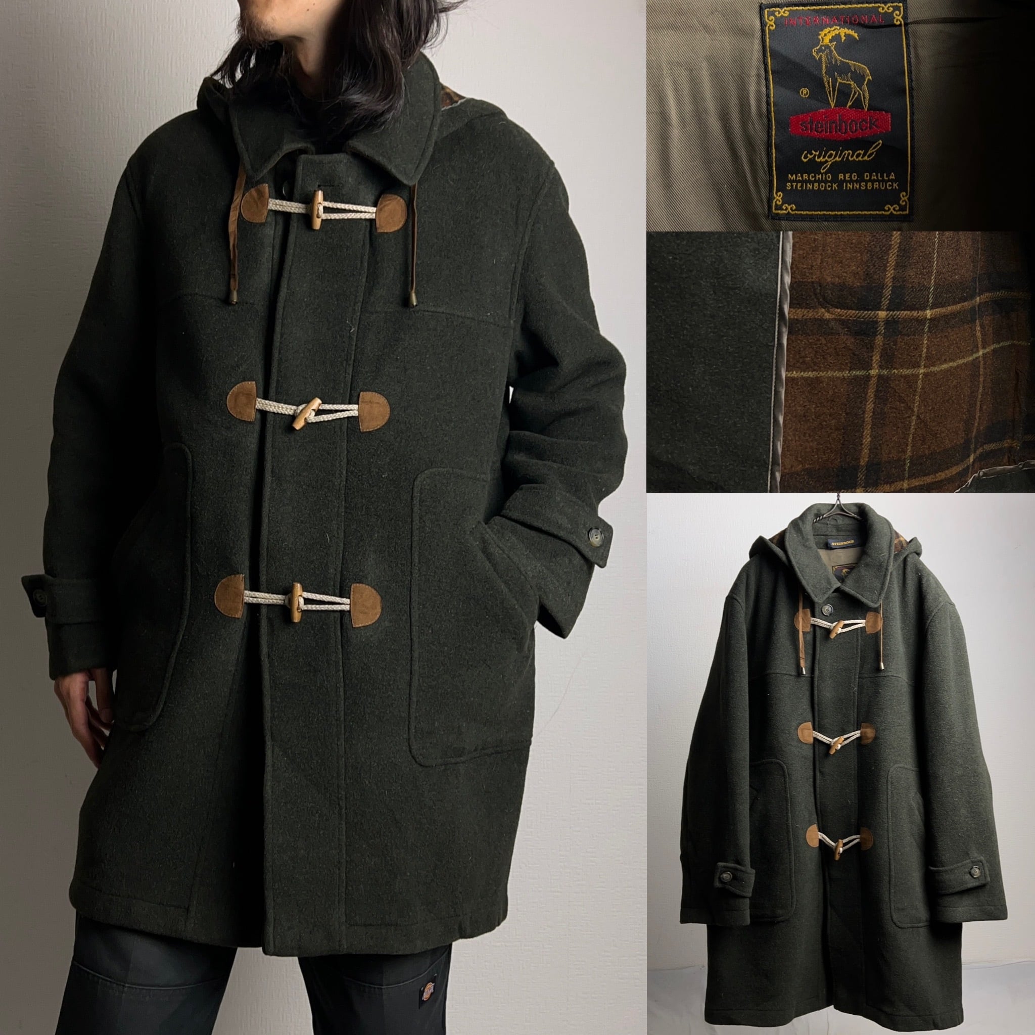 オーストリアの老舗ブランドsteinbockのダッフルコート。通常のボタンとトグルボタンのダブル合わせなのでボタンを閉めた時に綺麗なシルエットとなります。