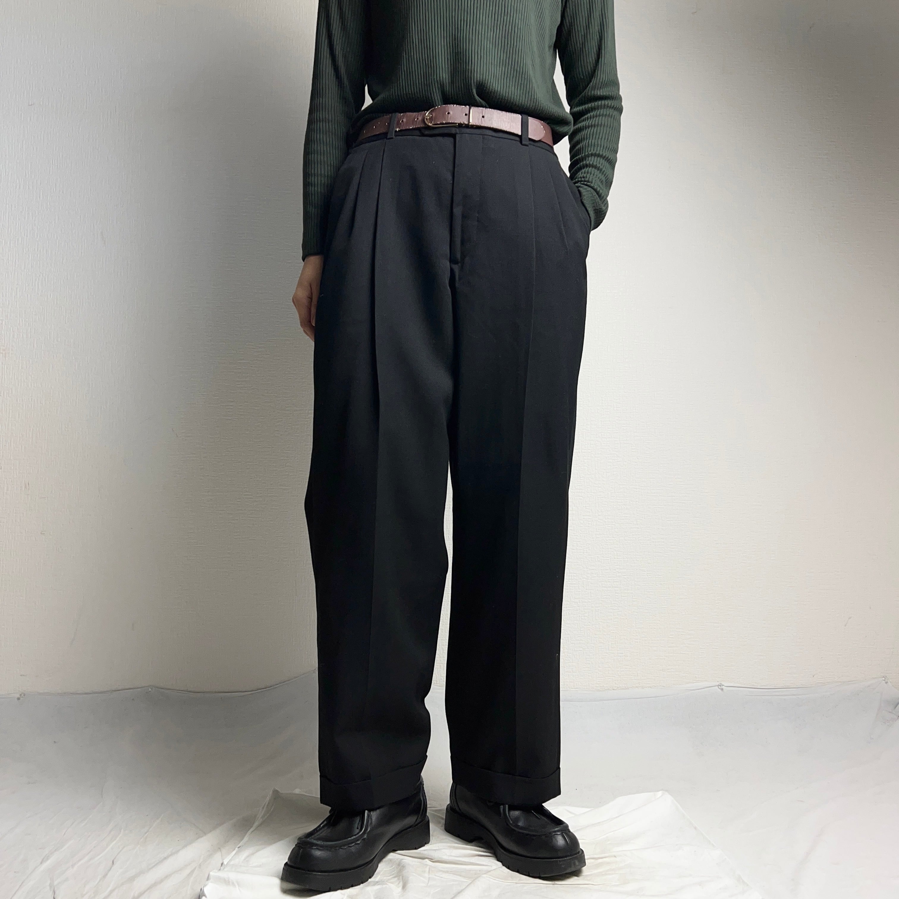 Wool Gabardine 2tuck Slacks Black SIZE 32 ウールギャバジン スラックス 2タック【1000A355】【送料無料】
