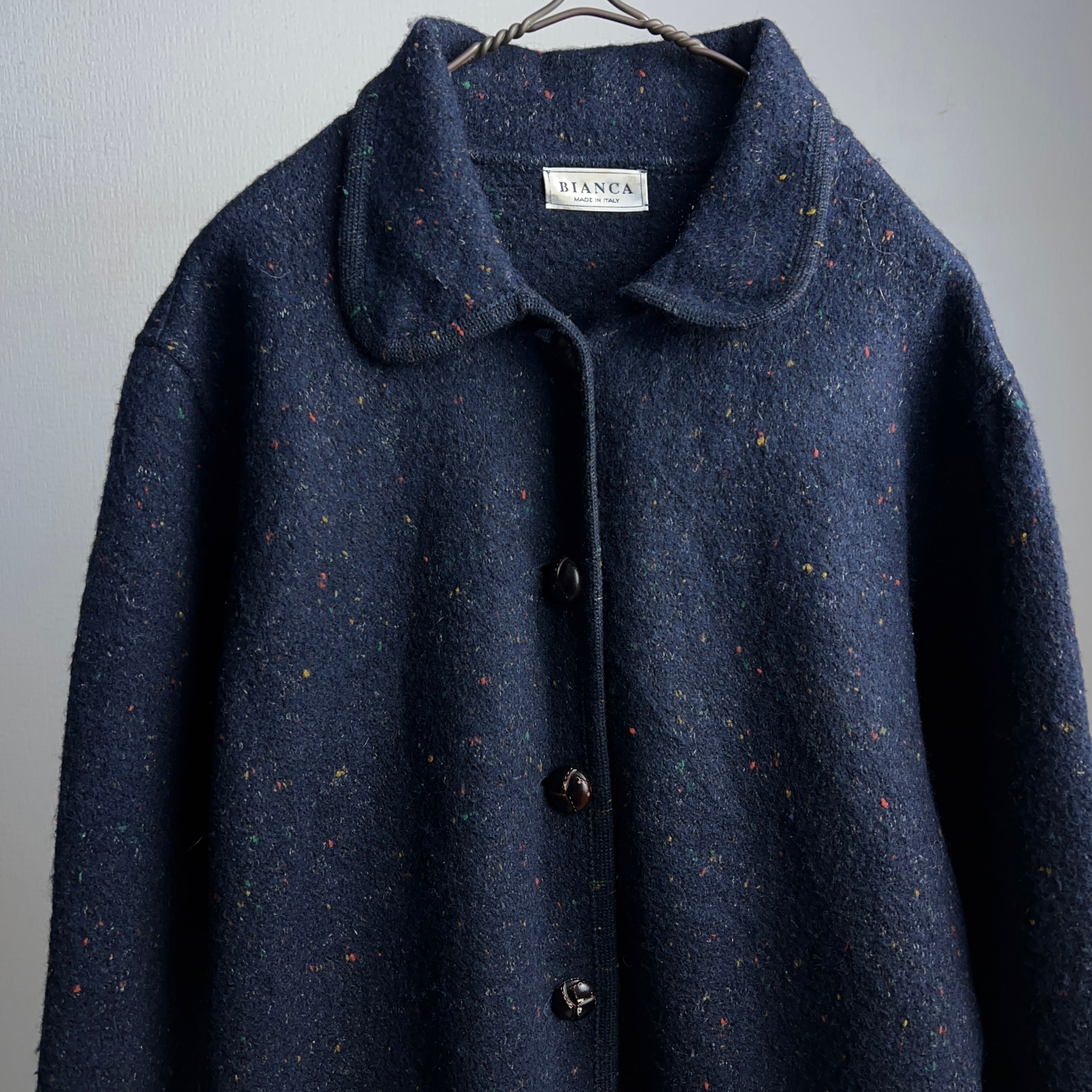 "BIANCA" Nep Yarn Wool Jacket ITALY製 ネップウールジャケット ラウンドカラー イタリア製【1000A401】【送料無料】
