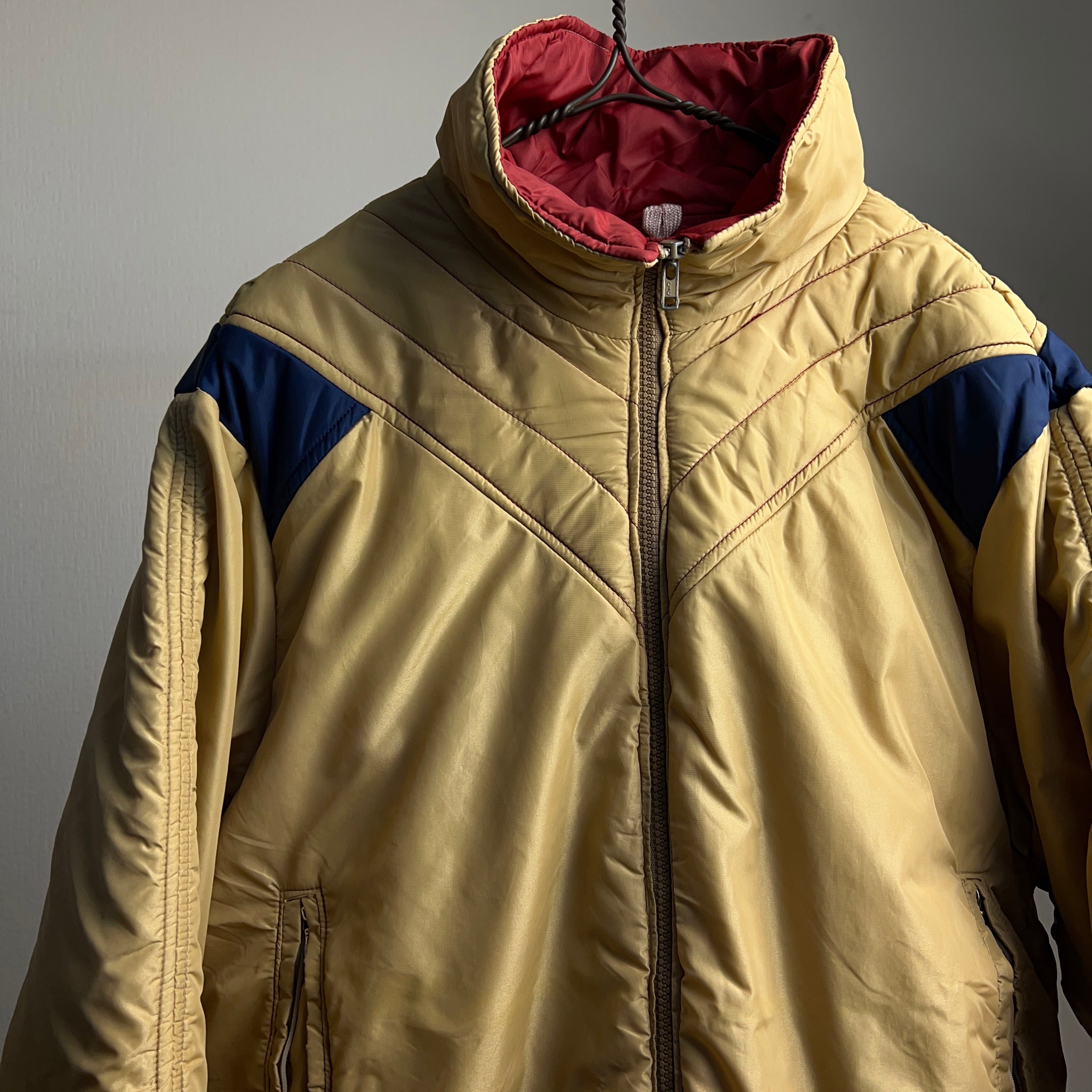 こちらは80年代頃のヴィンテージダウンジャケット。グースダウンを使ったハイグレード仕様。着丈はショートでレトロなデザインが古着好きにハマるかと思います。