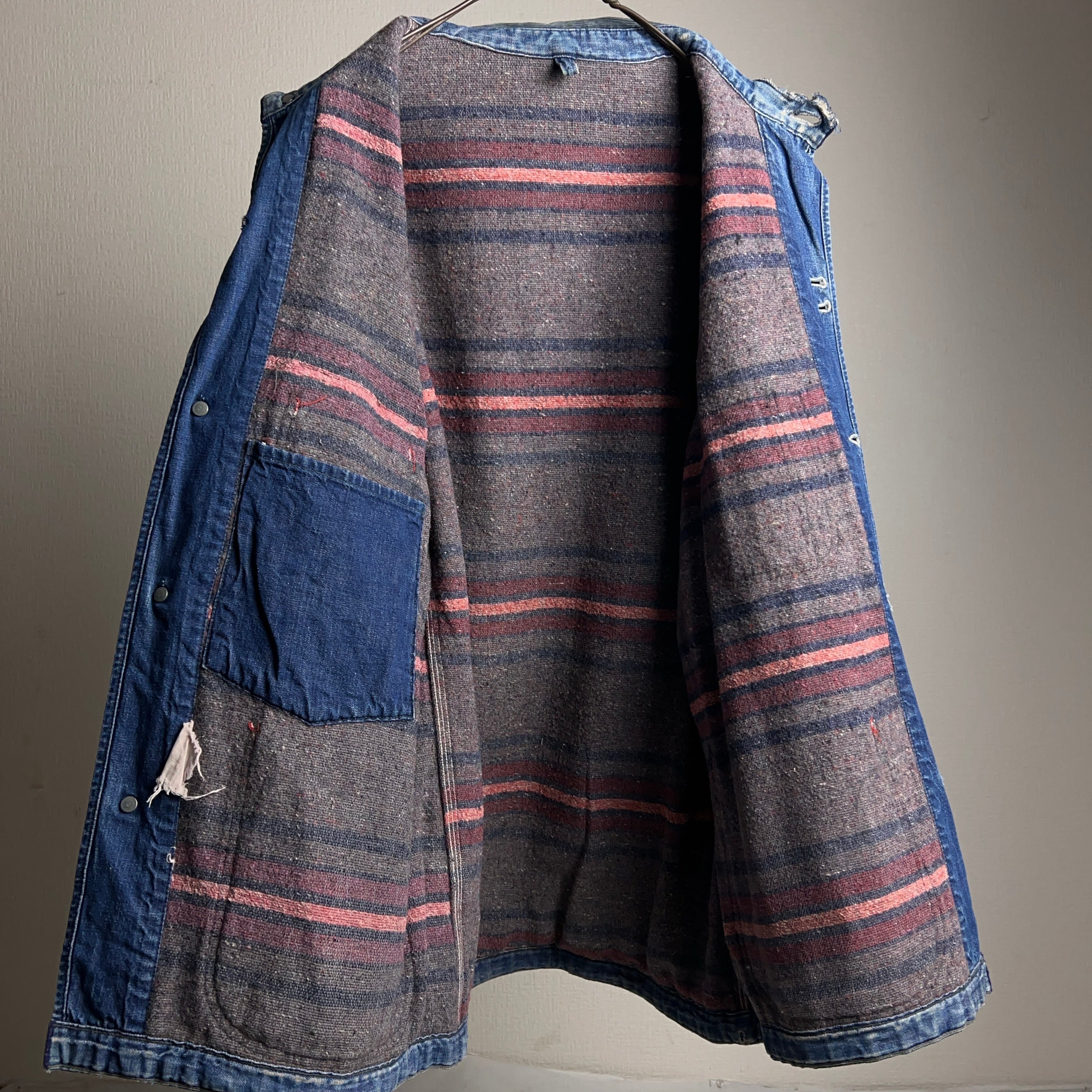 60's Sears Lined Denim Coverall Jacket 60年代 シアーズ デニムカバーオール ブランケット裏地付き 色落ち 雰囲気【1000A607】【送料無料】