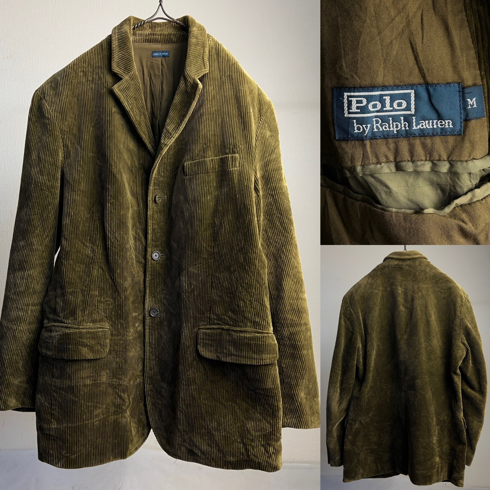 90's~ Polo by Ralph Lauren Corduroy Tailored Jacket SIZE M 90年代 00年代 ポロラルフローレン コーデュロイ テーラードジャケット オリーブグリーン【1000A660】【送料無料】