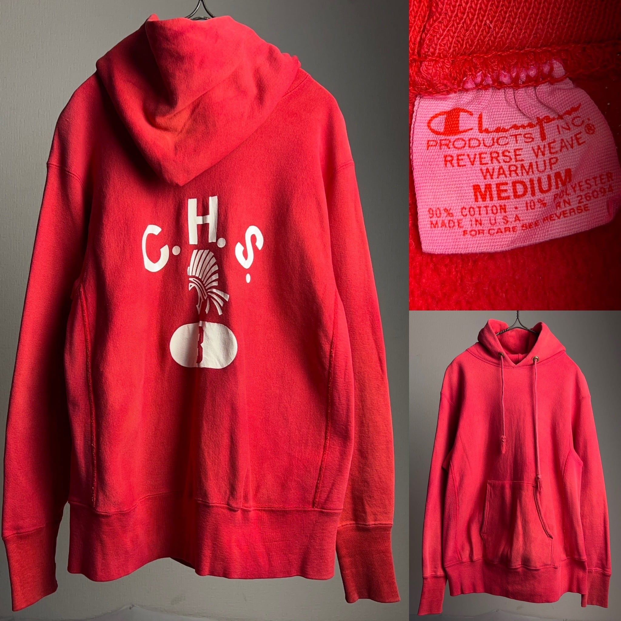 70's Champion "Reverse Weave" Hoodie USA製 SIZE M 70年代 チャンピオン リバースウィーブ パーカー フーディー バックプリント カレッジ 3段 単色タグ【1000A668下】【送料無料】