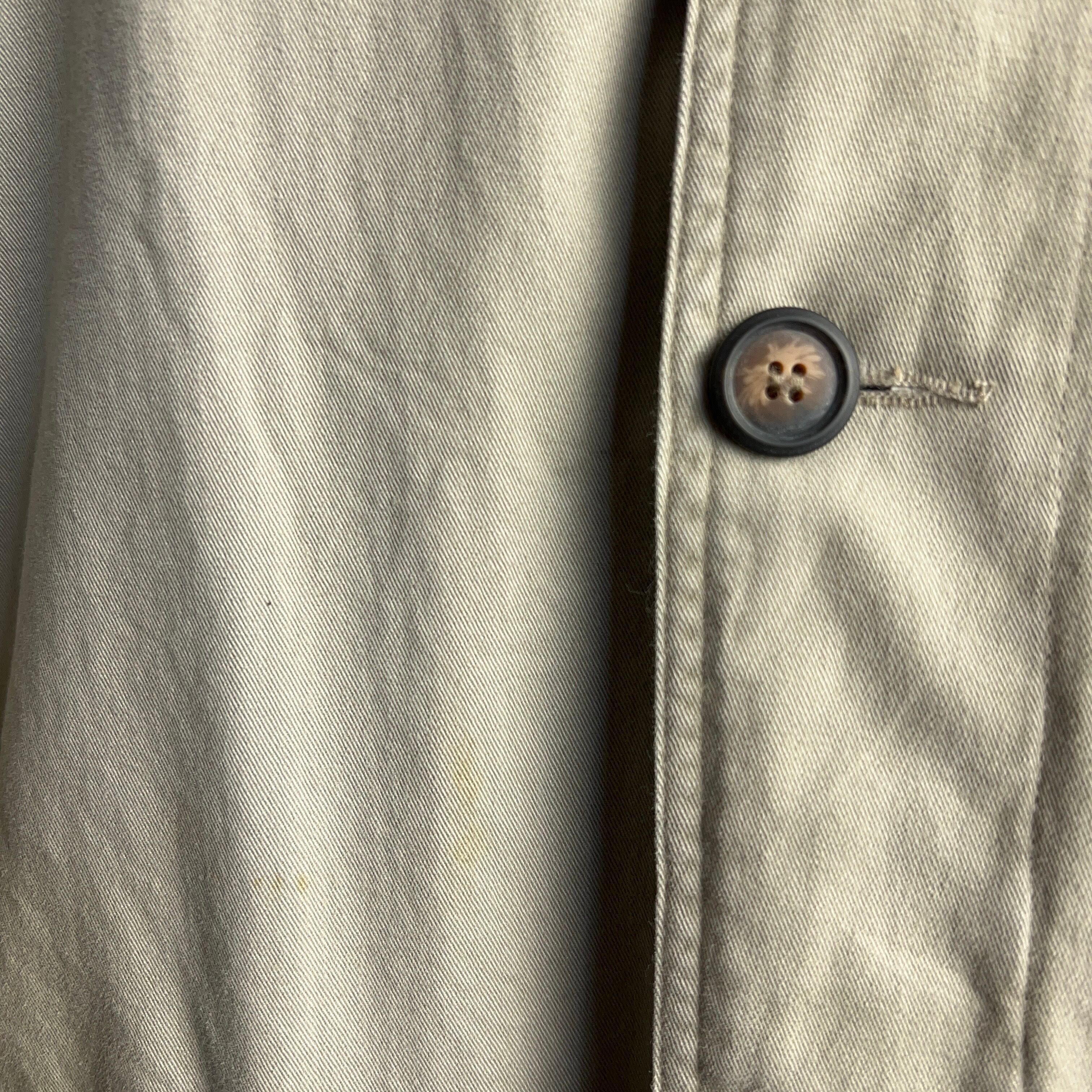襟がコーデュロイ切り替えとなったカバーオールのようなミドル丈デザインで古着っぽさがあり古着屋スタッフにも人気があるジャケットです。
