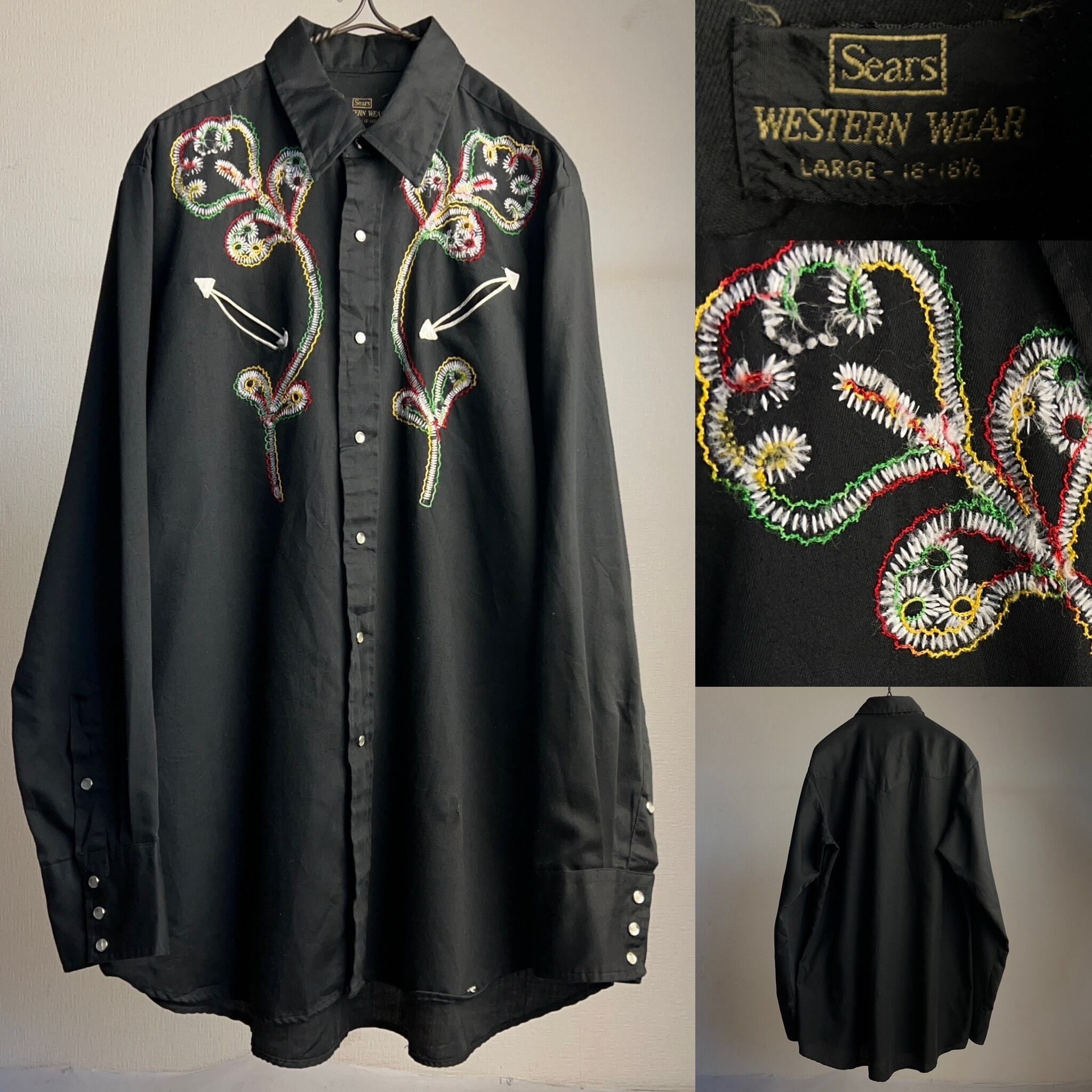 70's SEARS Black Western Shirt 70年代 シアーズ ウエスタンシャツ 刺繍 黒【1000A843】【送料無料】