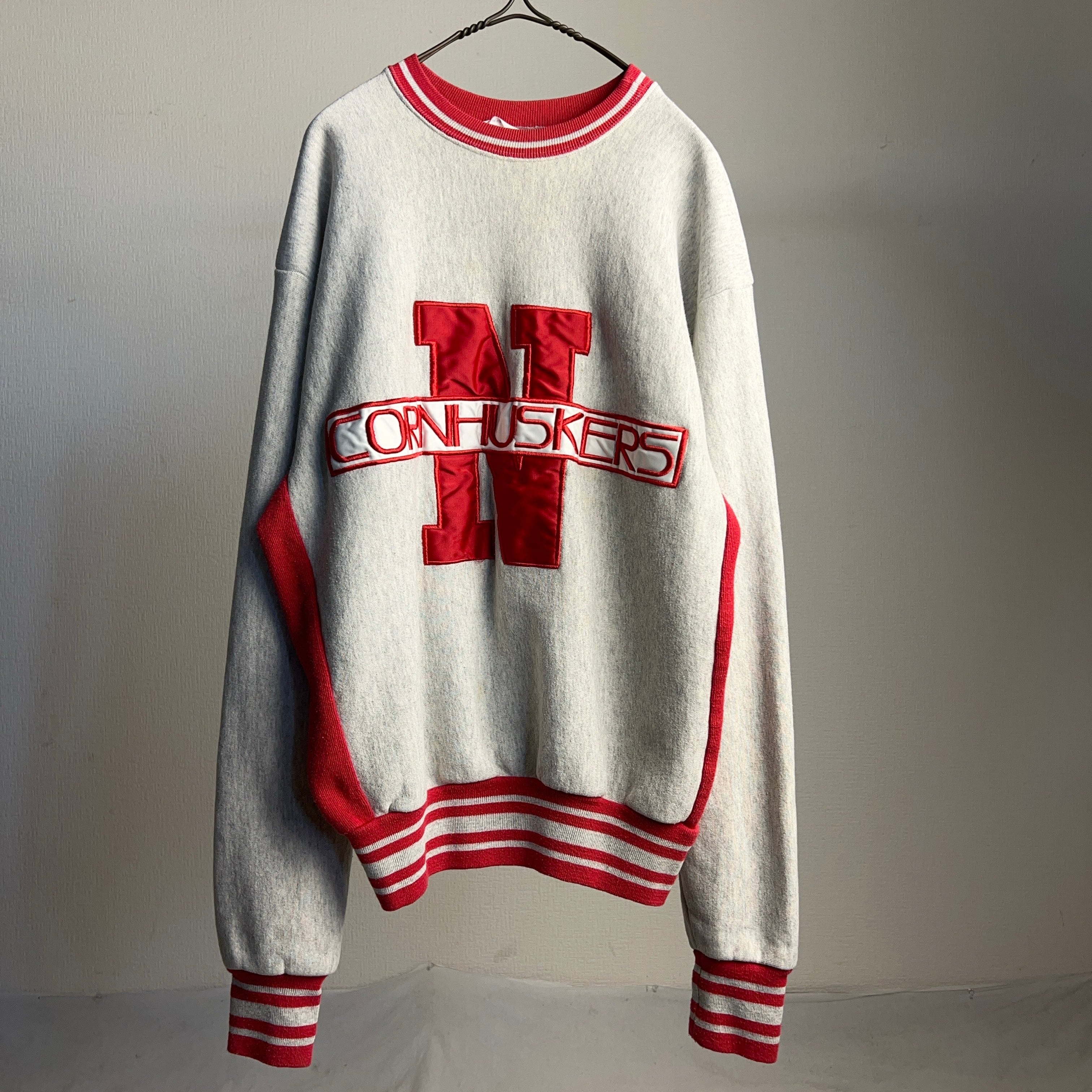 90's College Sweatshirt USA製 SIZE XL 90年代 カレッジプリント スウェット リバースウィーブ風 刺繍 ネブラスカ大学 コーンハスカーズ【1000A859】【送料無料】