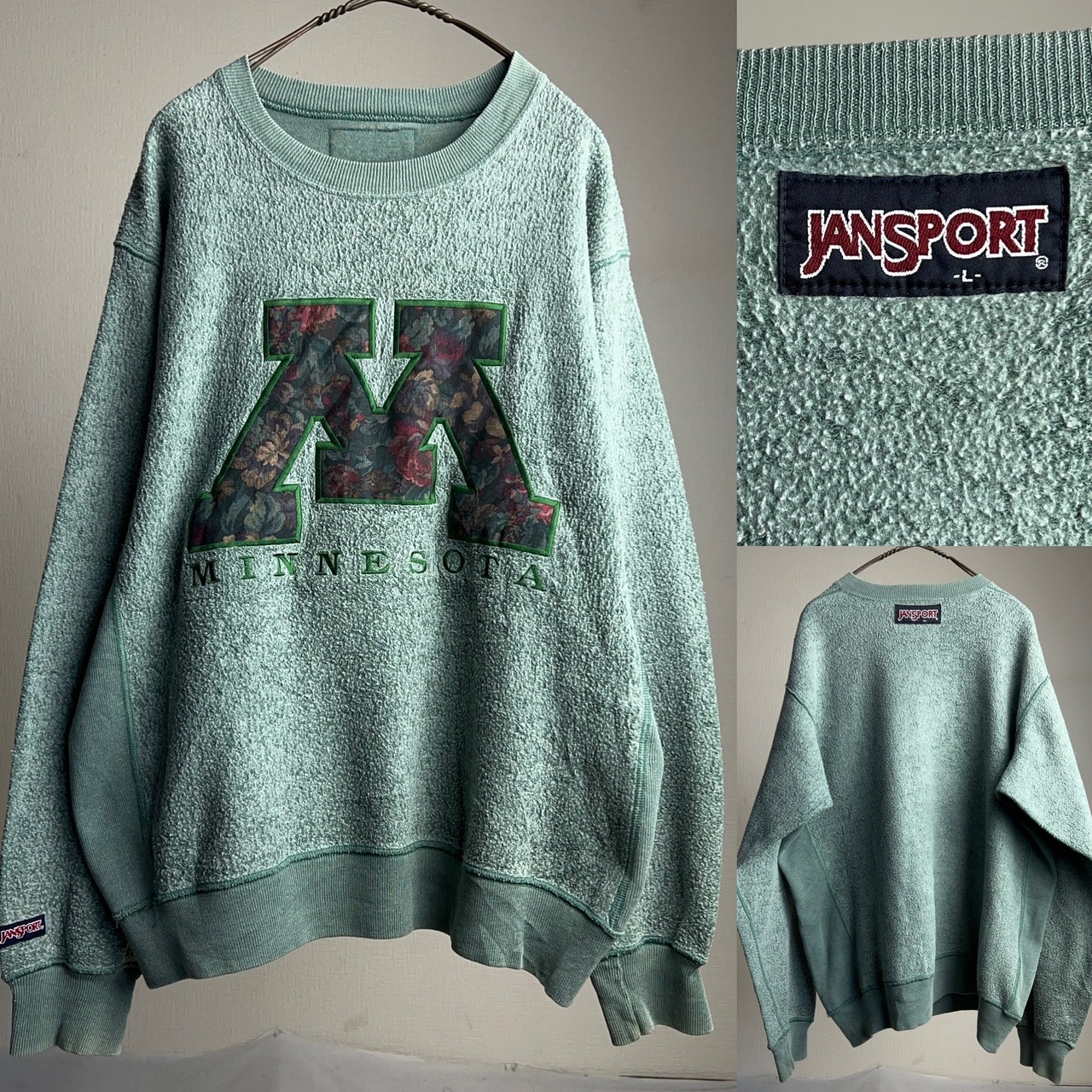 JANSPORT REVERSE Sweatshirt MINNESOTA SIZE L ジャンスポーツ デザインスウェット 起毛 ミネソタ大学 グリーン カレッジ【1000A877】