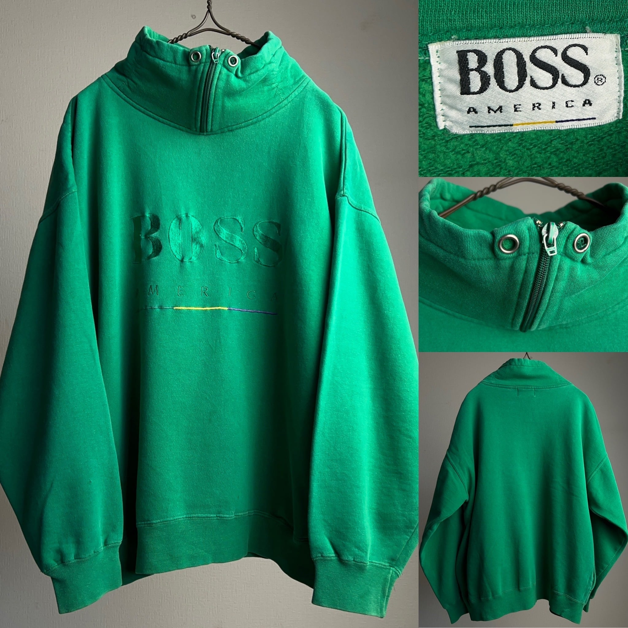 90's BOSS Sweatshirt 90年代 ボス ハーフジップスウェット 刺繍【1000A879】