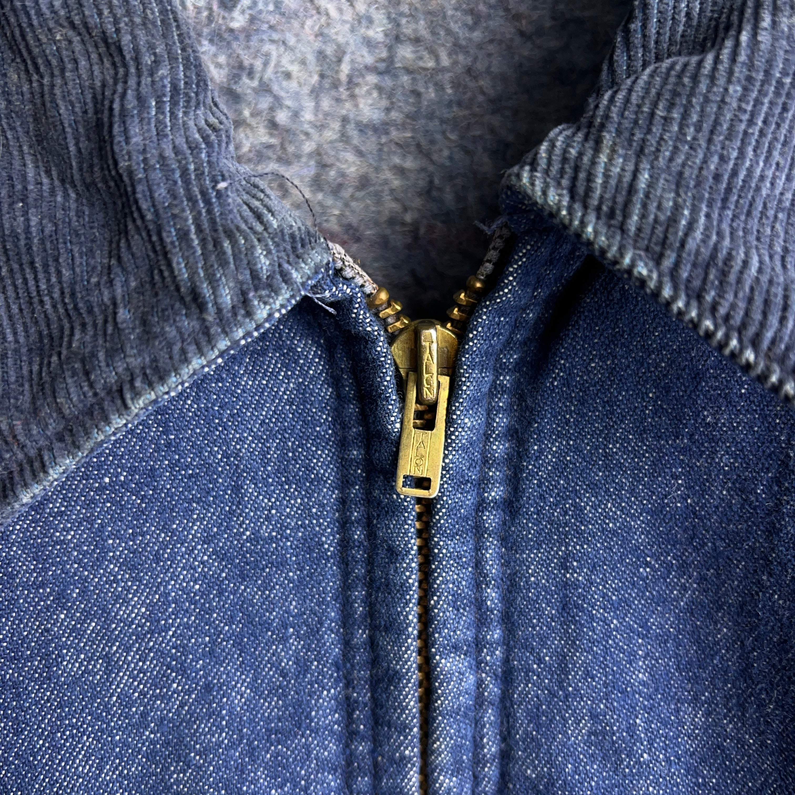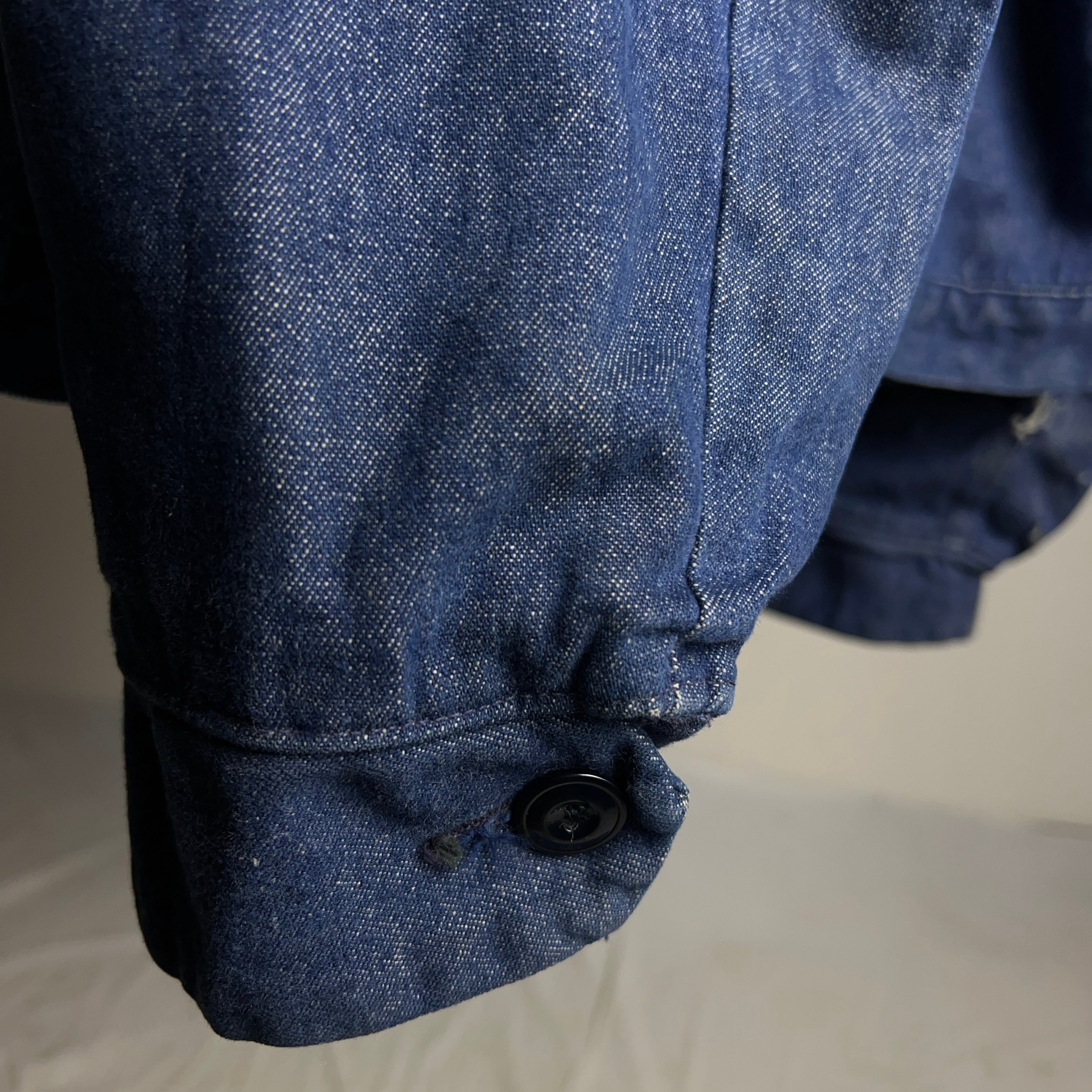 70's~80's Zip-up Lined Denim Work Jacket 70年代 80年代 デニムジャケット ワークジャケット ブルゾン 裏地ブランケット付き 濃紺【1000A886】【送料無料】