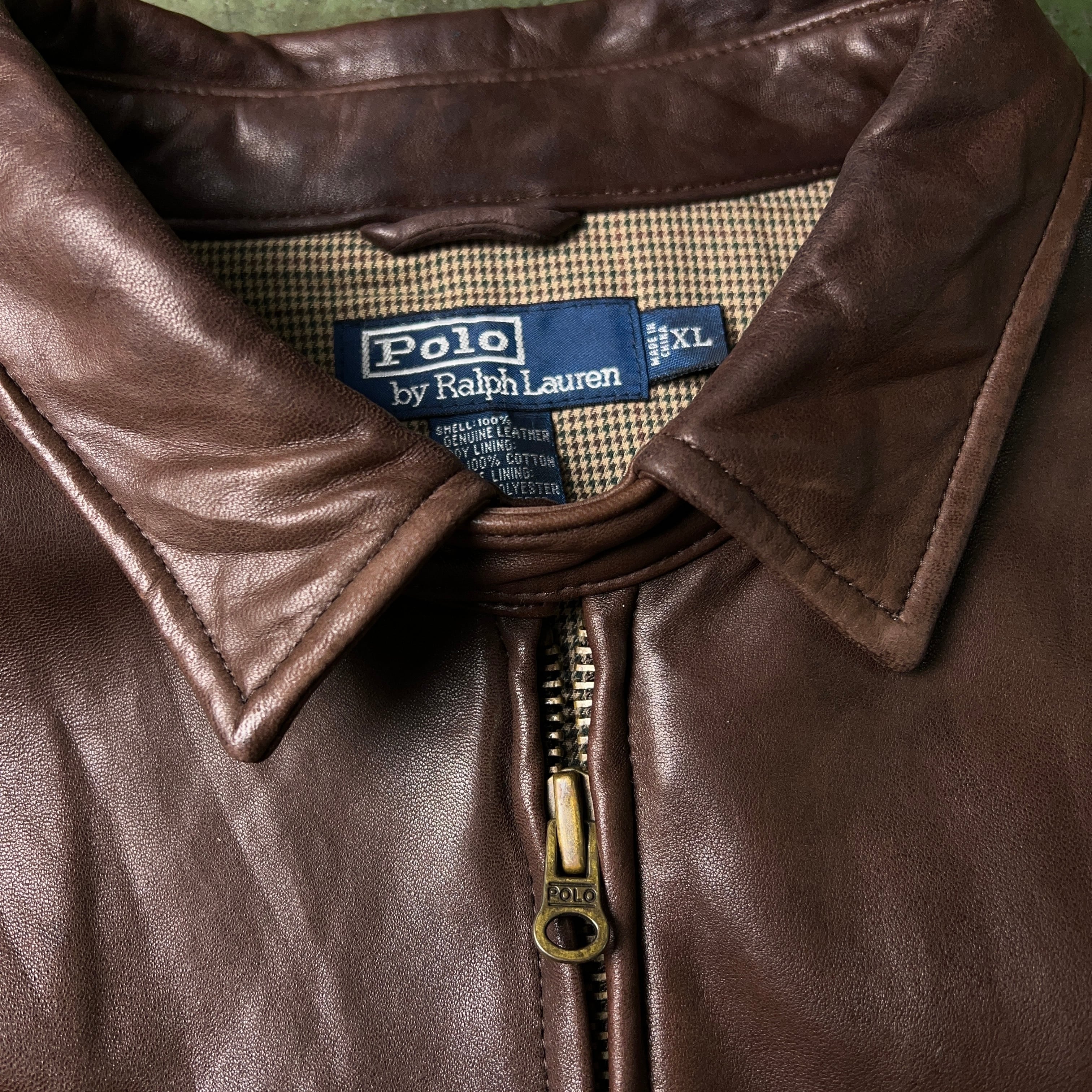 90's Polo by Ralph Lauren Leather Swing Top 90年代 ポロラルフローレン レザースウィングトップ XL ブラウン 茶【1000A901】【送料無料】