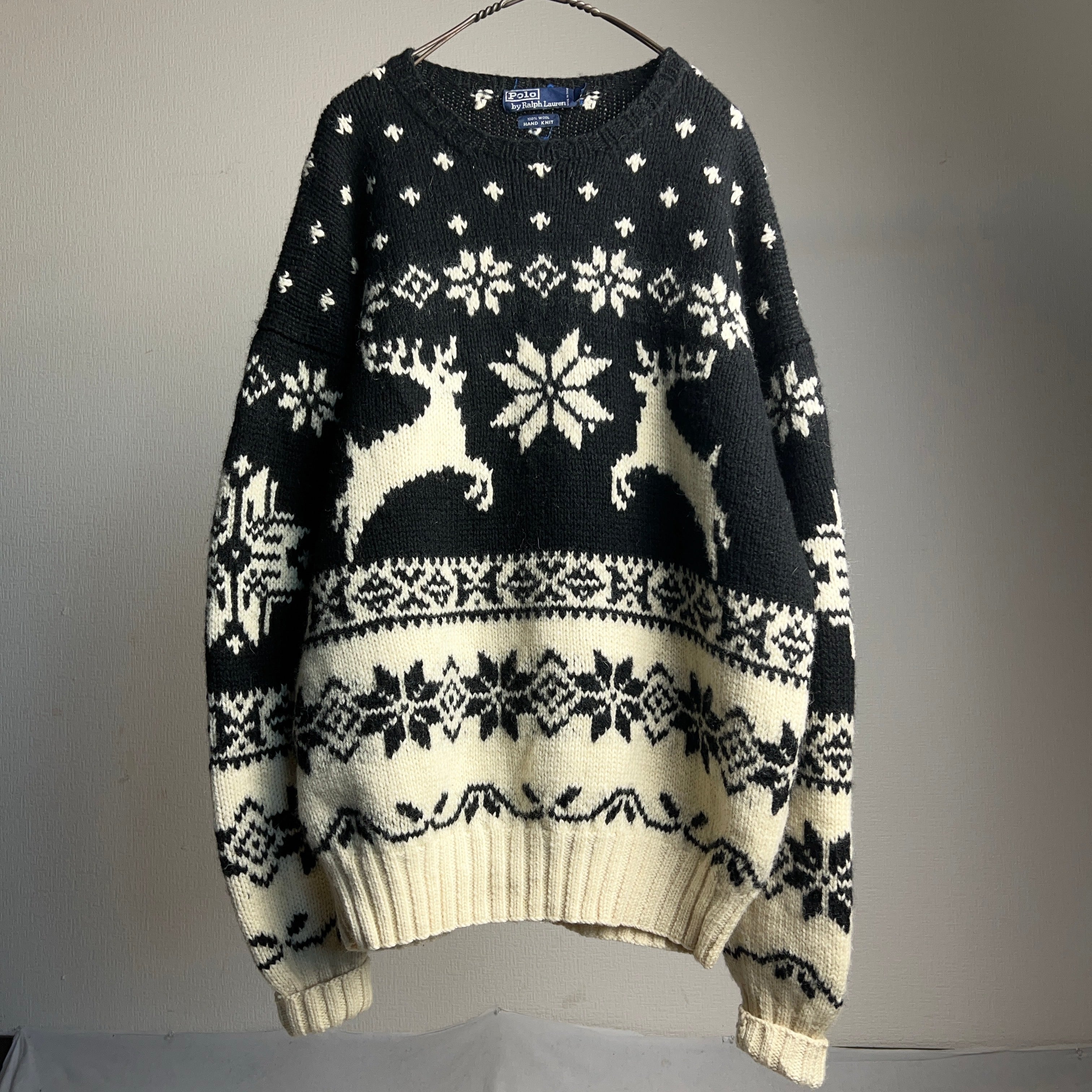 90's "Polo by Ralph Lauren" Hand Knit Sweater Nordic Patterned SIZE XL 90年代 ポロラルフローレン ノルディック柄 セーター ニット ハンドニット【1000A904】【送料無料】
