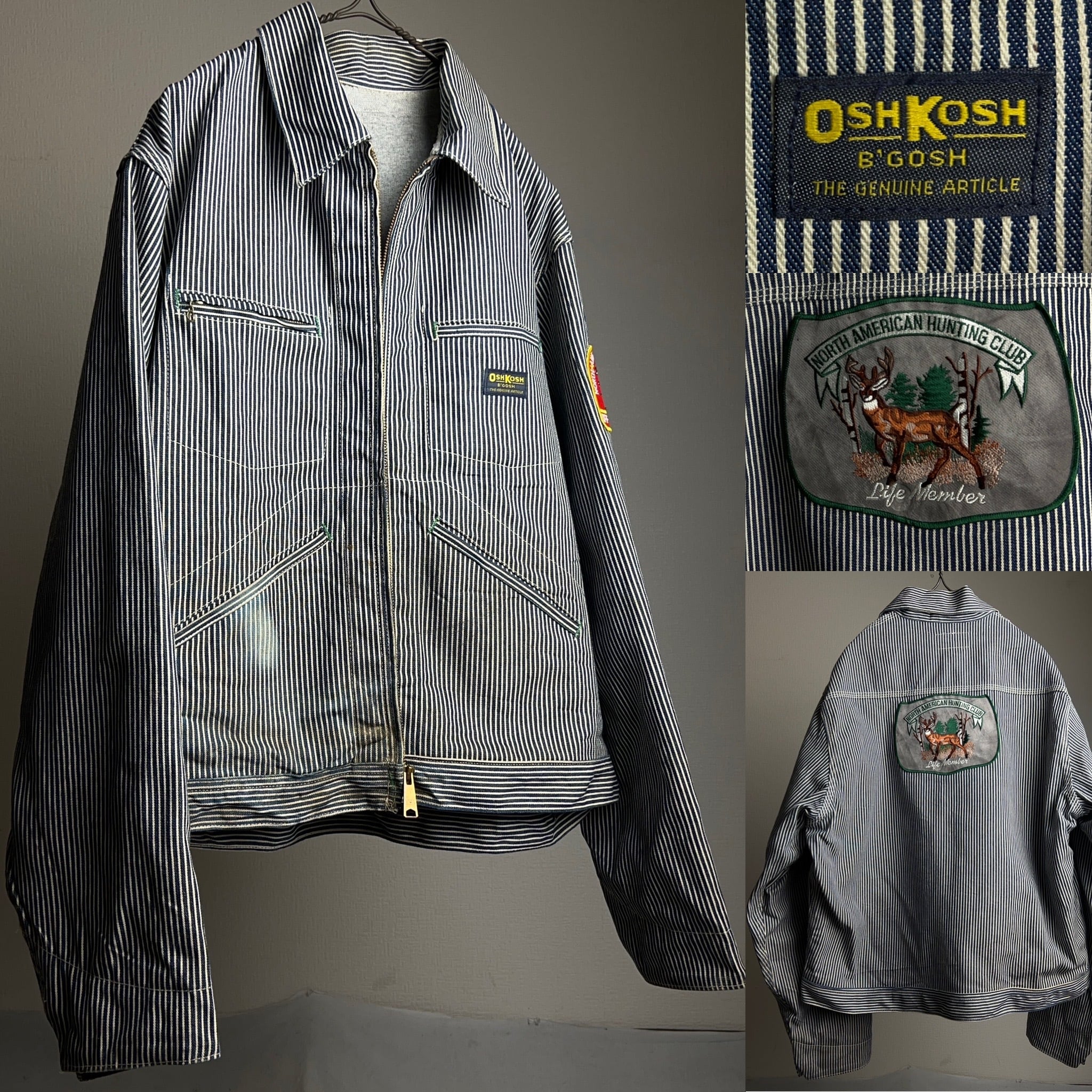 ~80's OSHKOSH B’GOSH Hickory Stripe Denim Jacket オシュコシュ ヒッコリーストライプ カバーオール ワッペン デニムジャケット 裏地付き【1000A936】【送料無料】