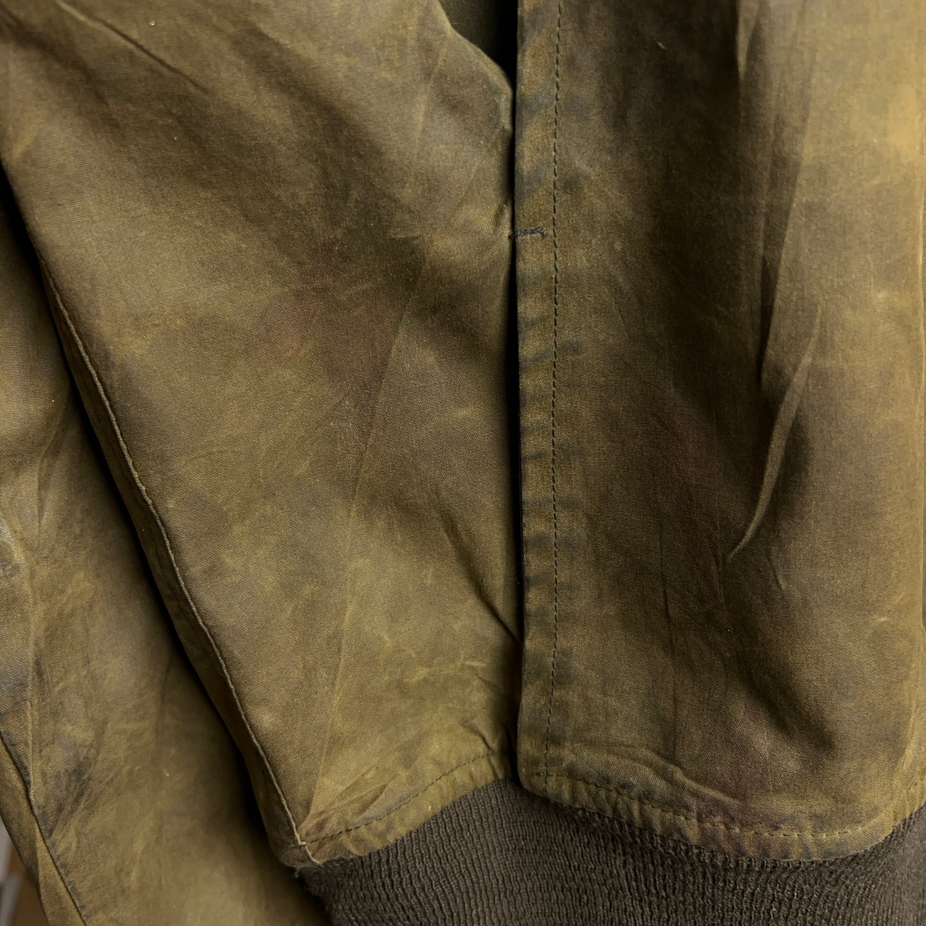 通常ハンティングやバイク系で作られることの多いオイルドジャケットですが、こちらはミリタリーのタンカースジャケット仕様となっています。