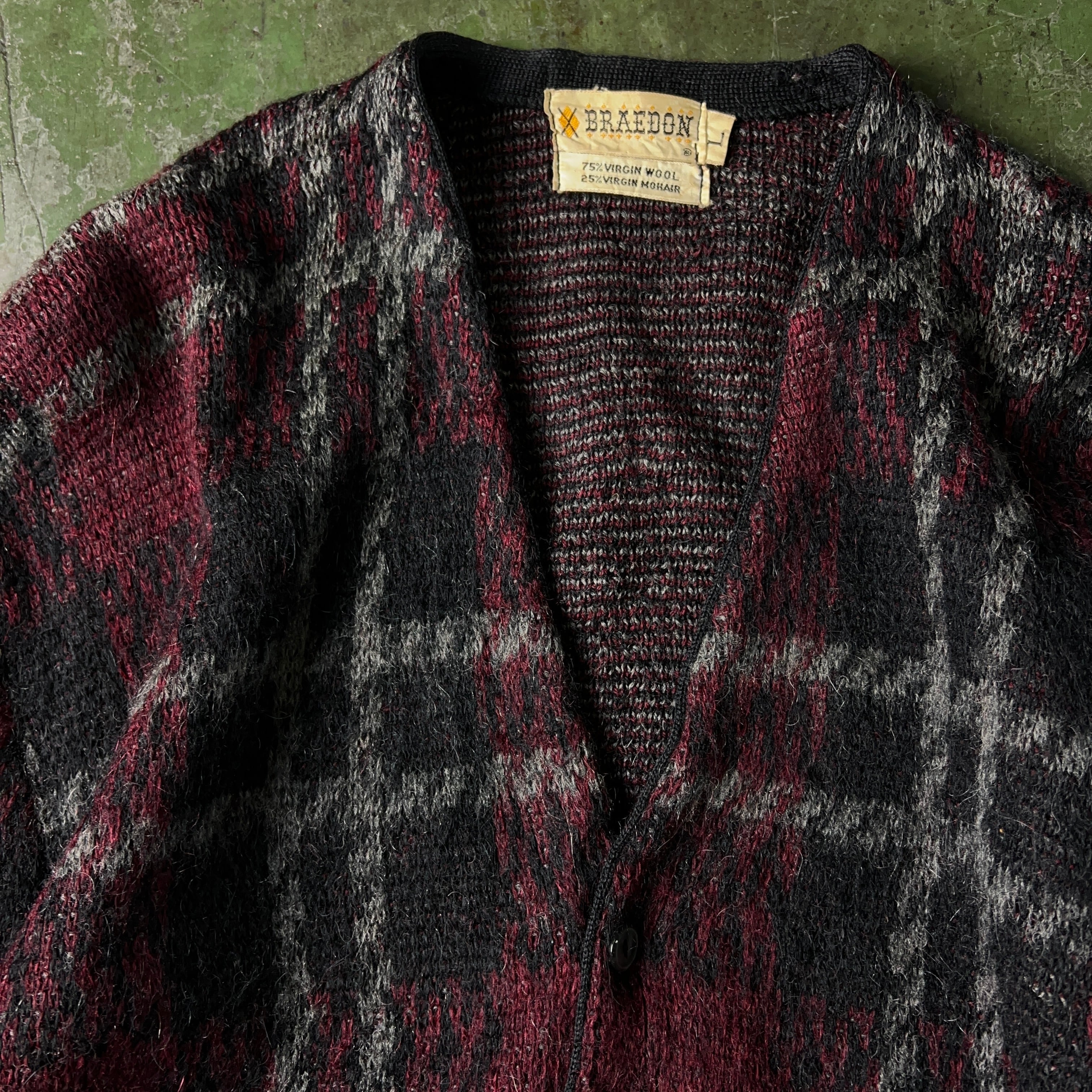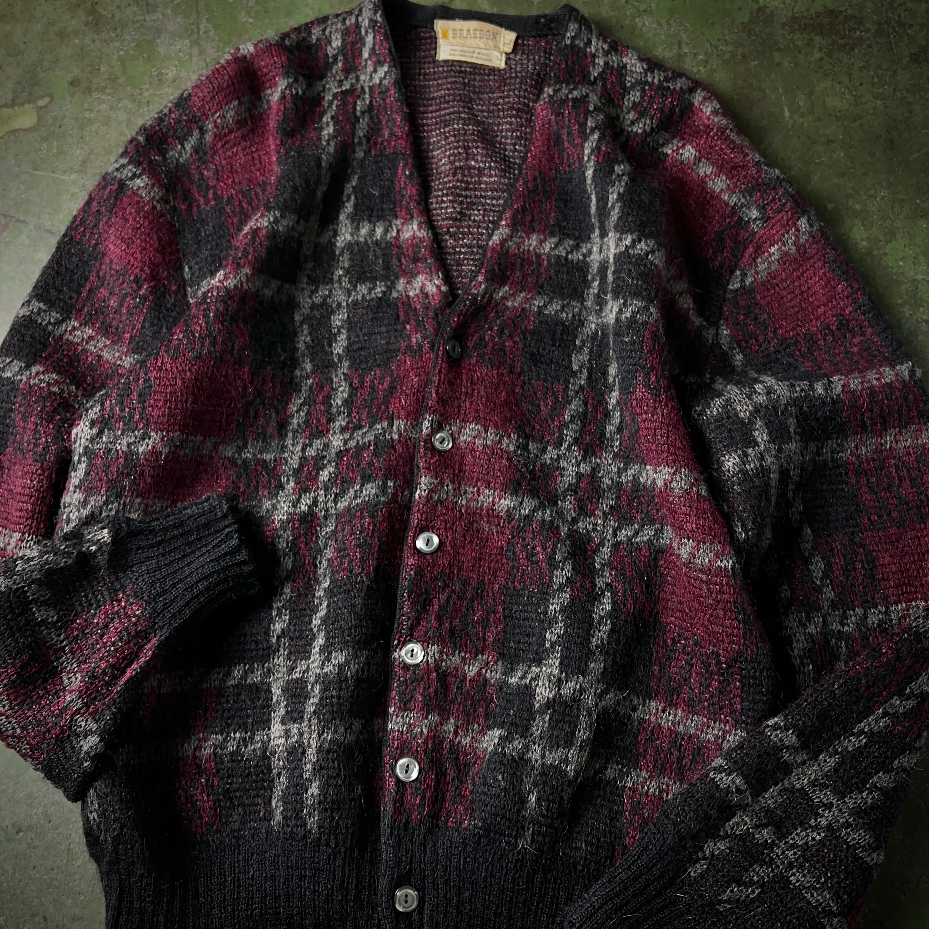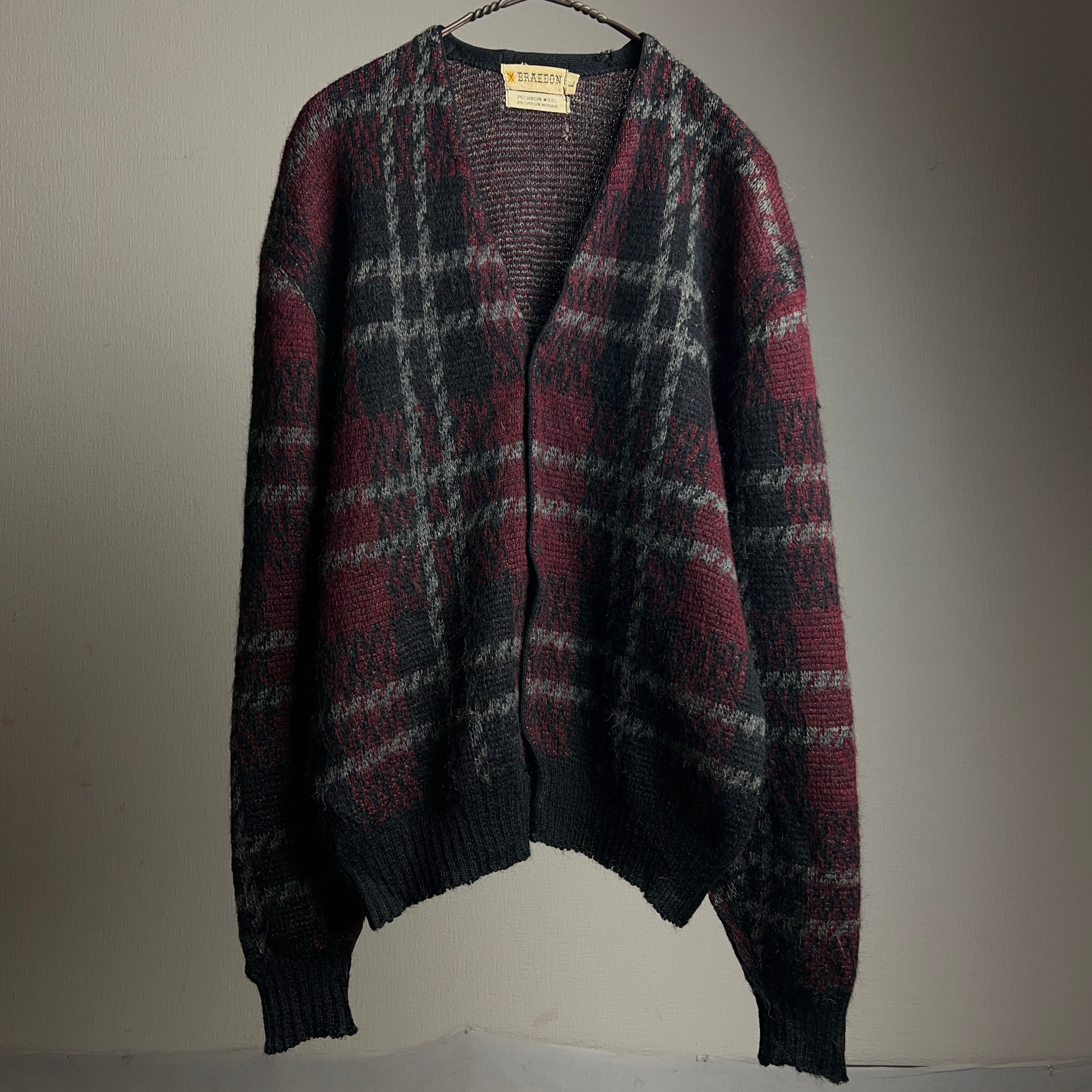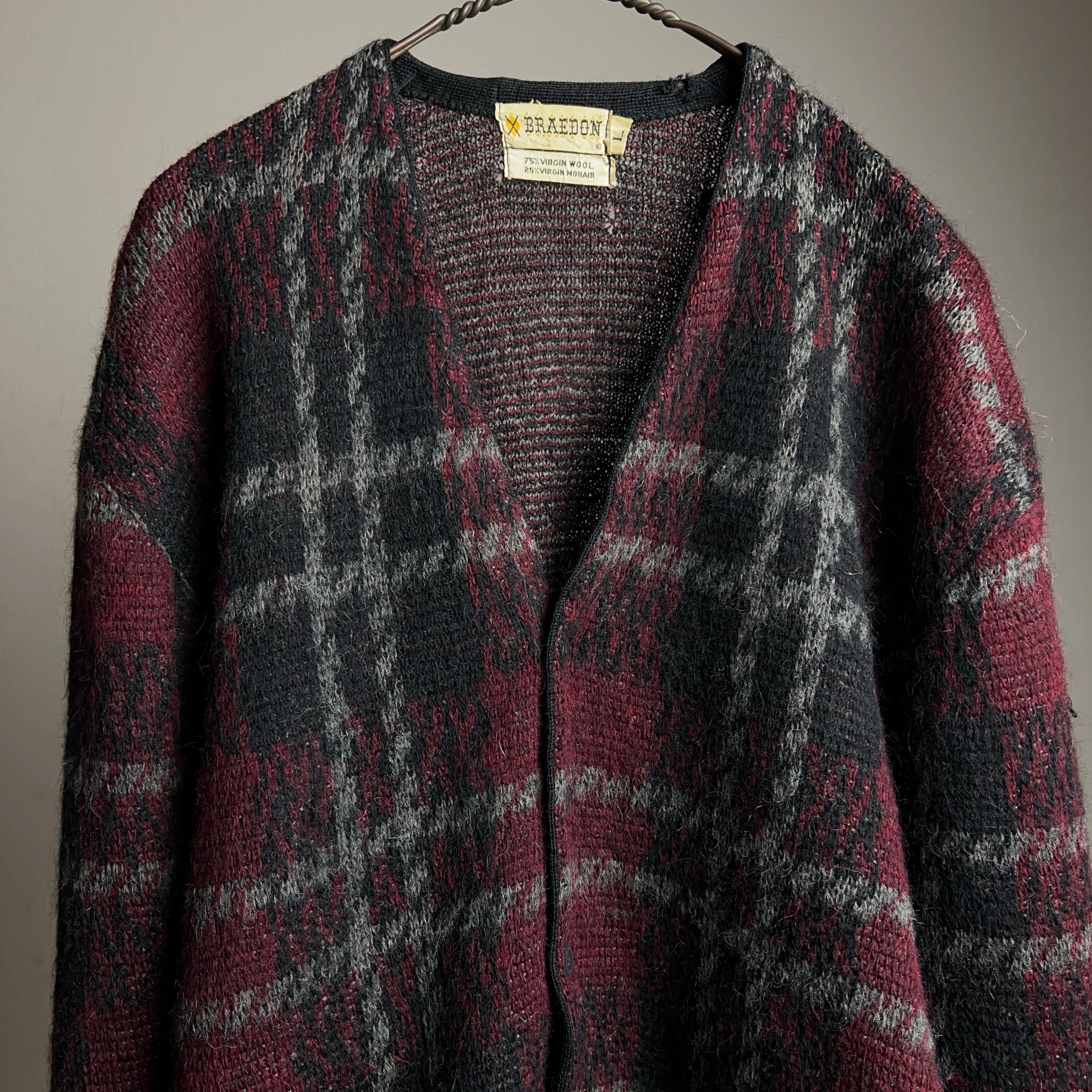 60's Wool×Mohair Knit Cardigan Plaid SIZE L 60年代 ウール×モヘア チェック モヘアニットカーディガン セーター【1000A943】【送料無料】