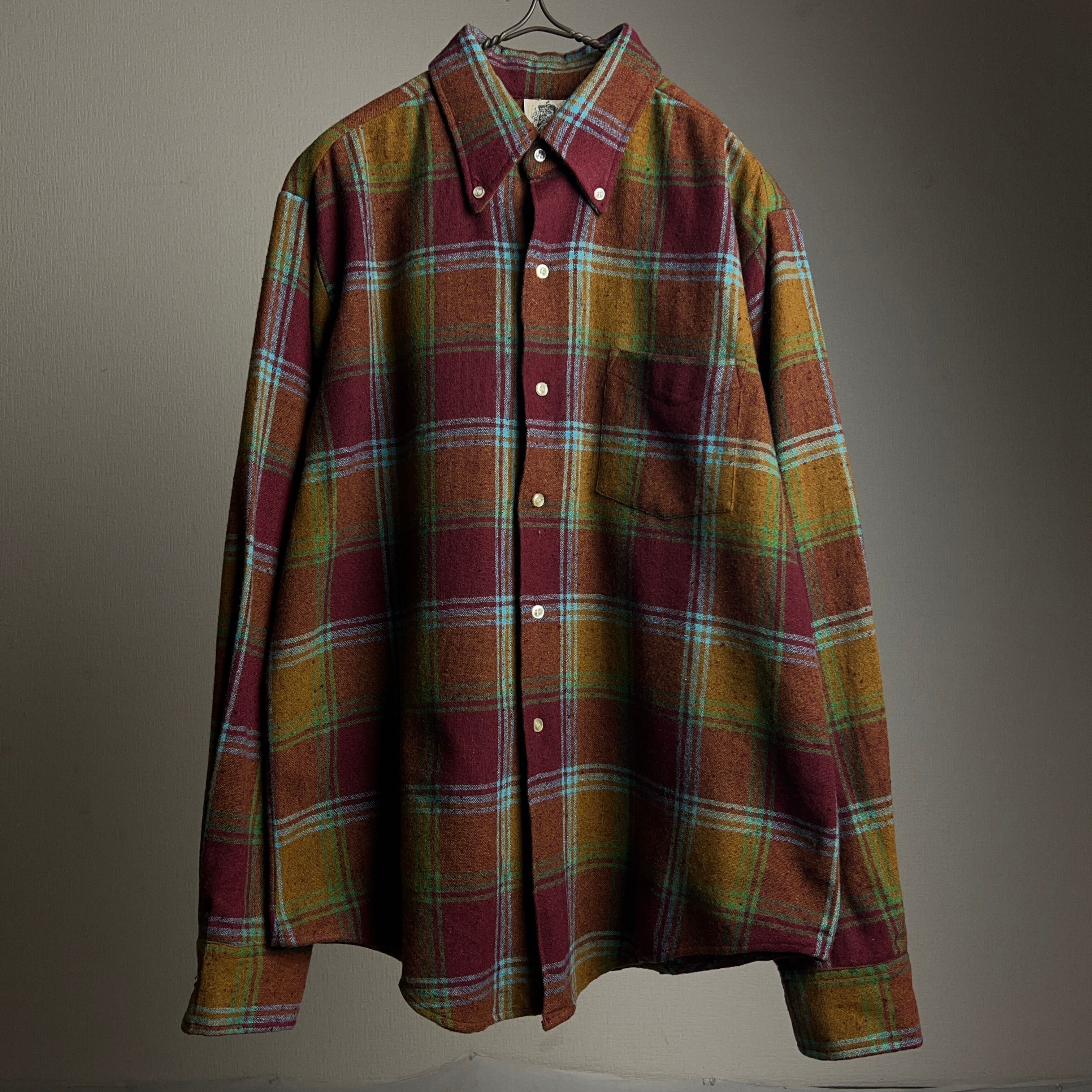60's KENNINGTON Plaid Wool Shirt SIZE L 60年代 ケニントン チェックウールシャツ【1000A944】