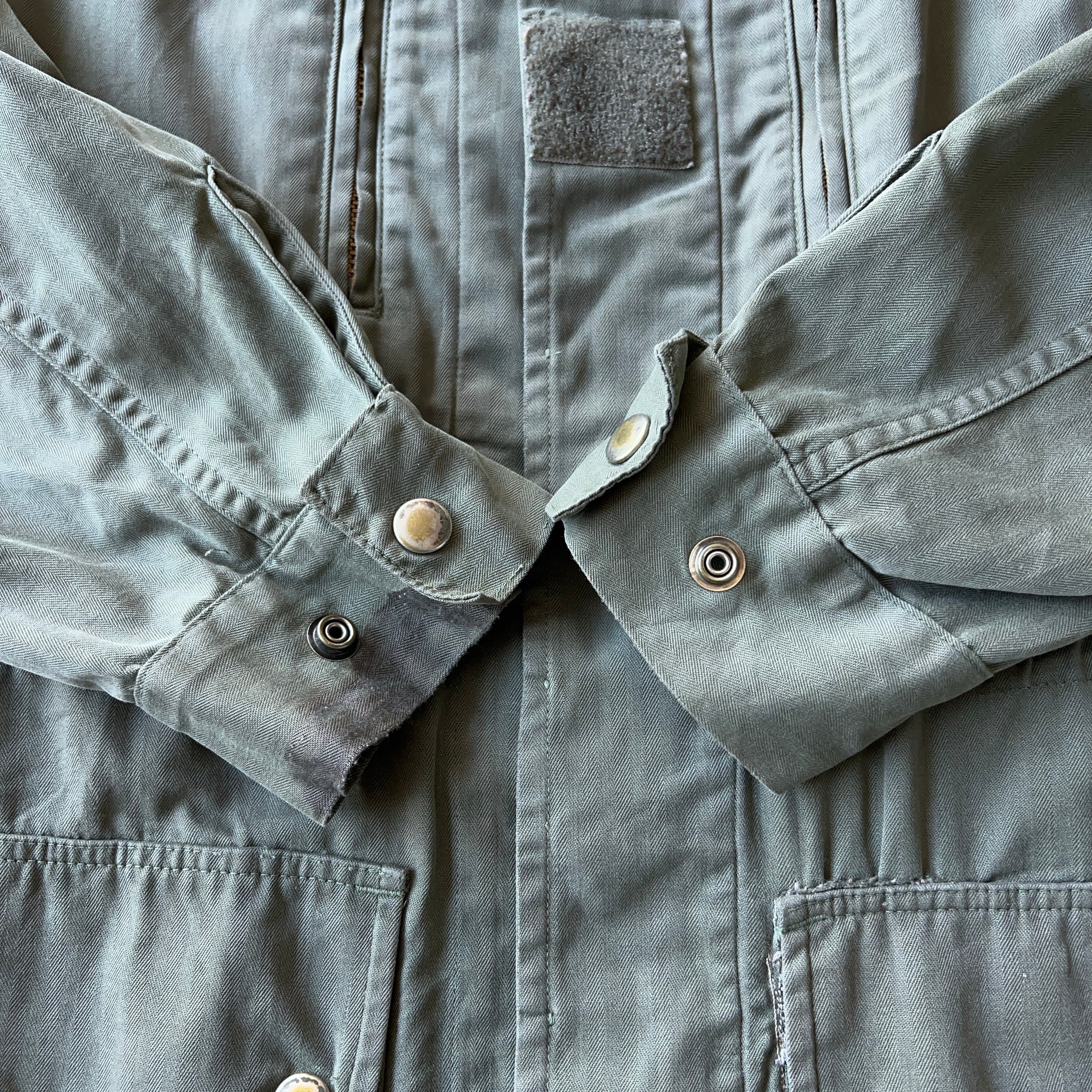 ヘリンボーンツイルで柔らかい生地感の、フランス軍F1フィールドジャケット。