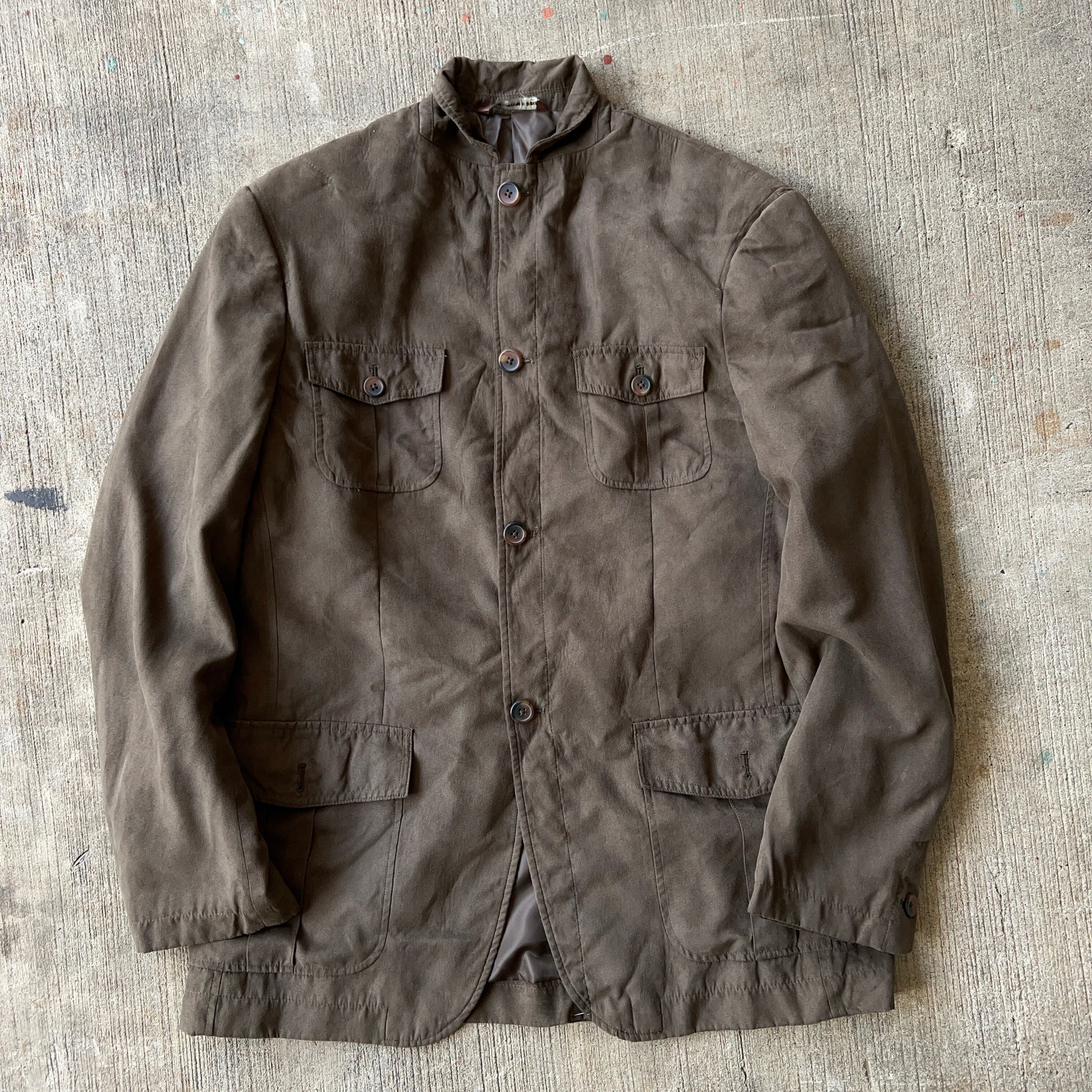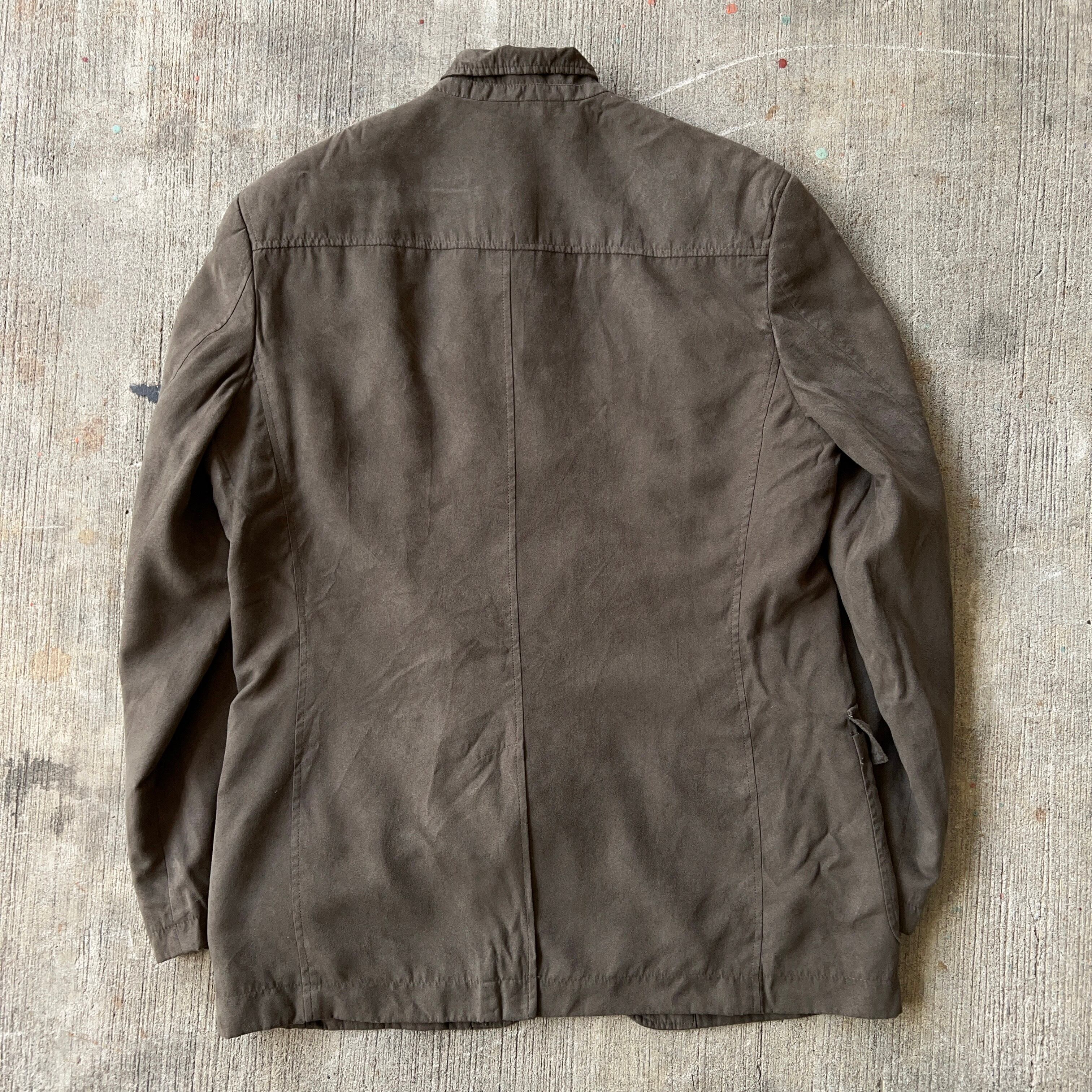 暗めブラウンで雰囲気のある、フェイクスエードジャケット。
