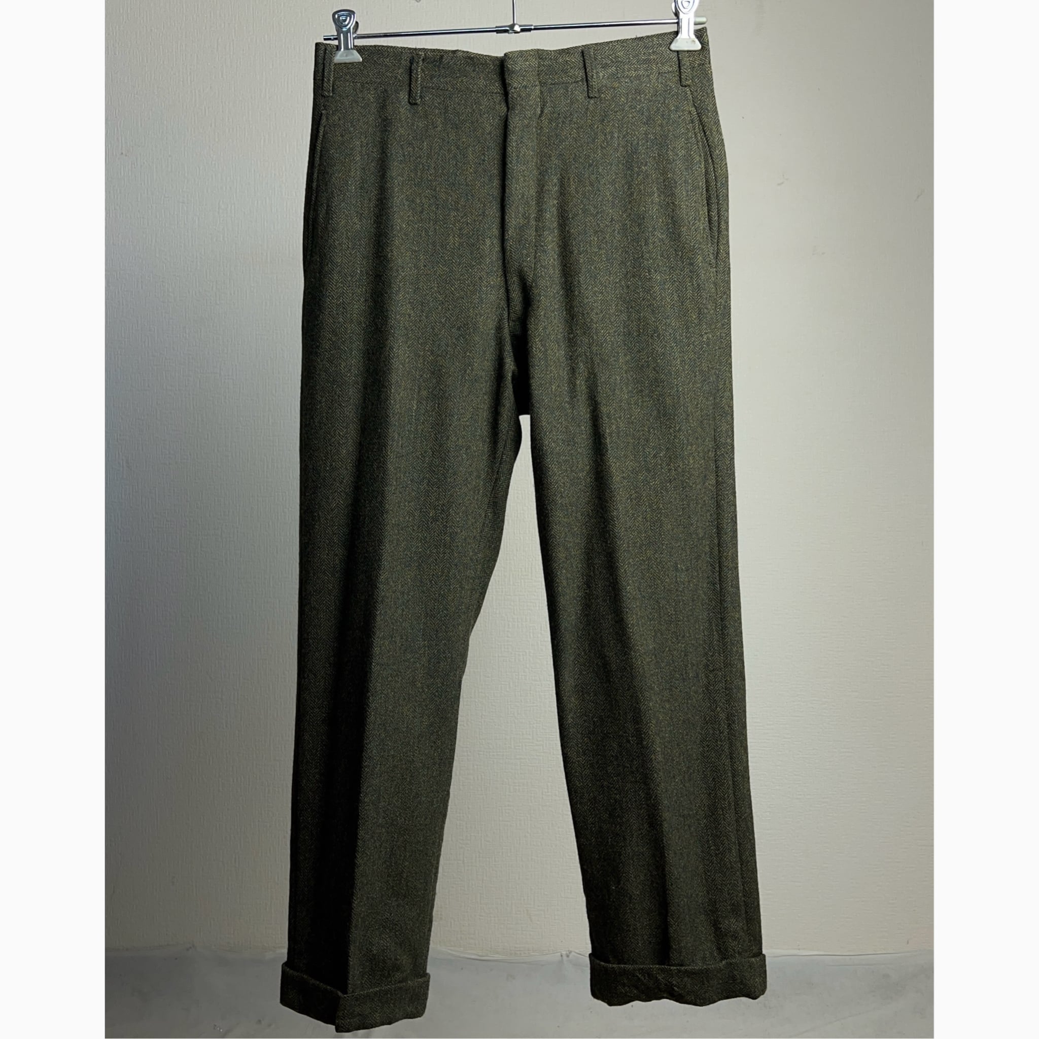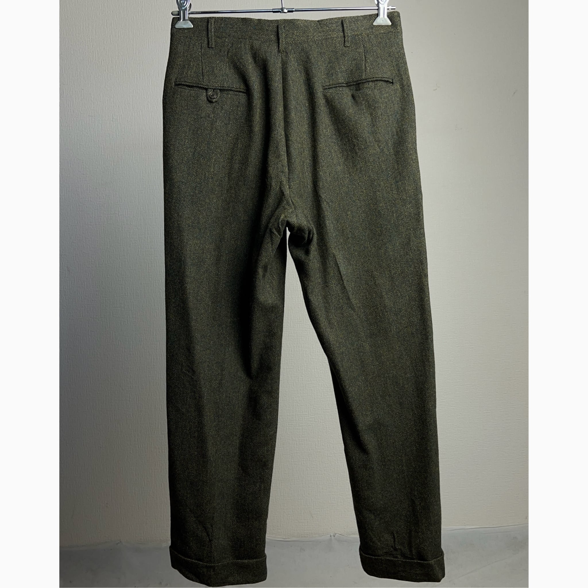 ヘリンボーンツイルのウールツィード生地を使ったヴィンテージスラックス。
