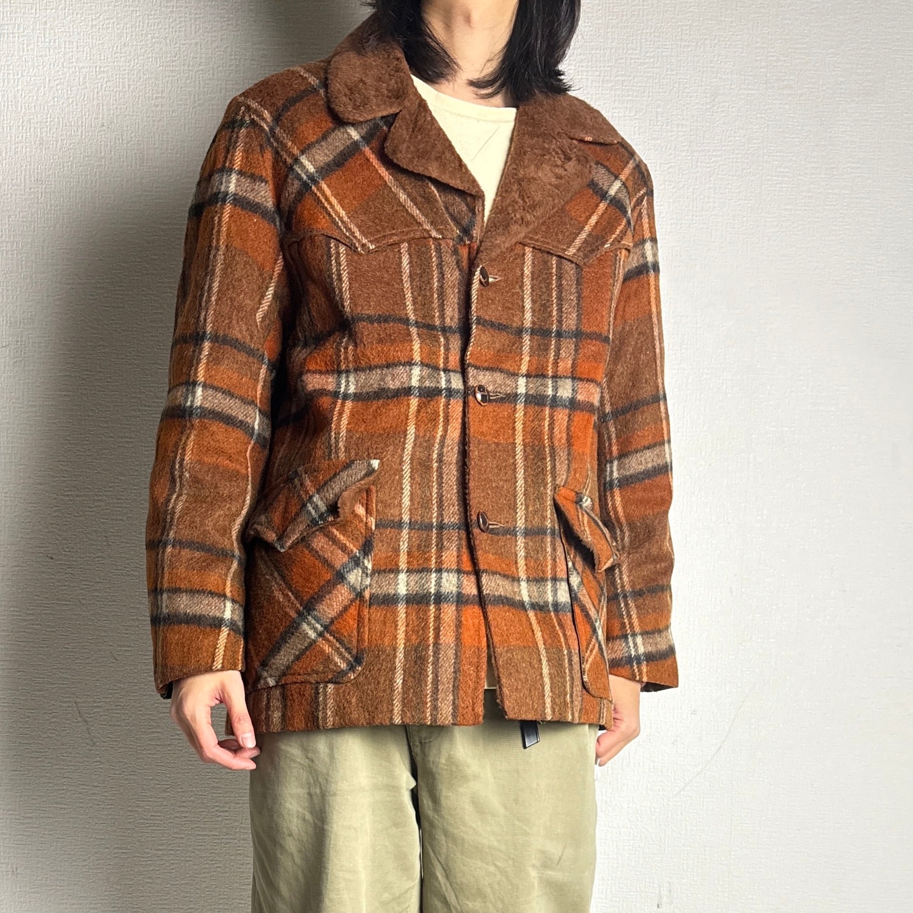 70's Pioneer Wear Wool Plaid Jacket 70年代 パイオニアウェア チェック柄 ウールジャケット ランチコート モンゴメリーワード【1000A995】【送料無料】